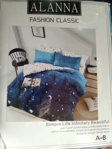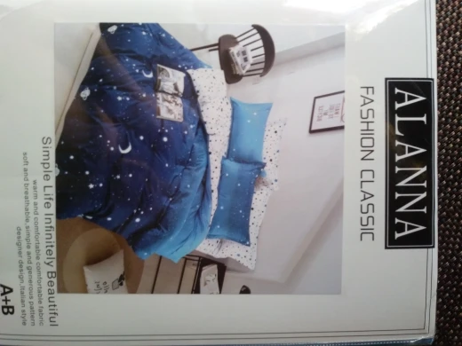 Комплект постельное бельё Alanna X-1084, комплект из 4-7 предметов, с принтом в виде звезд, дерева, цветов постельного белья
