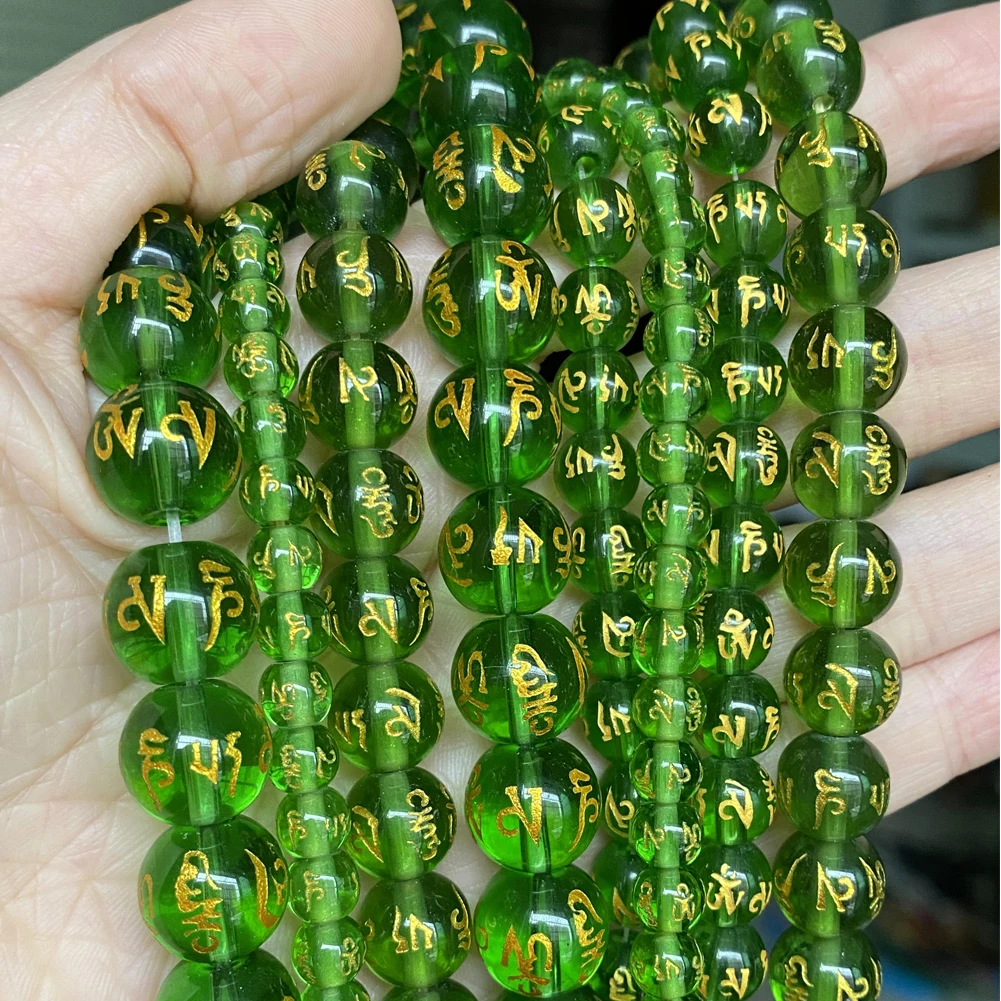 Натуральный зеленый Агаты шесть символов мантра буддийские Писания каменные бусины для самостоятельного изготовления ювелирных изделий Браслеты Шарм 6 8 10 12 мм 15"