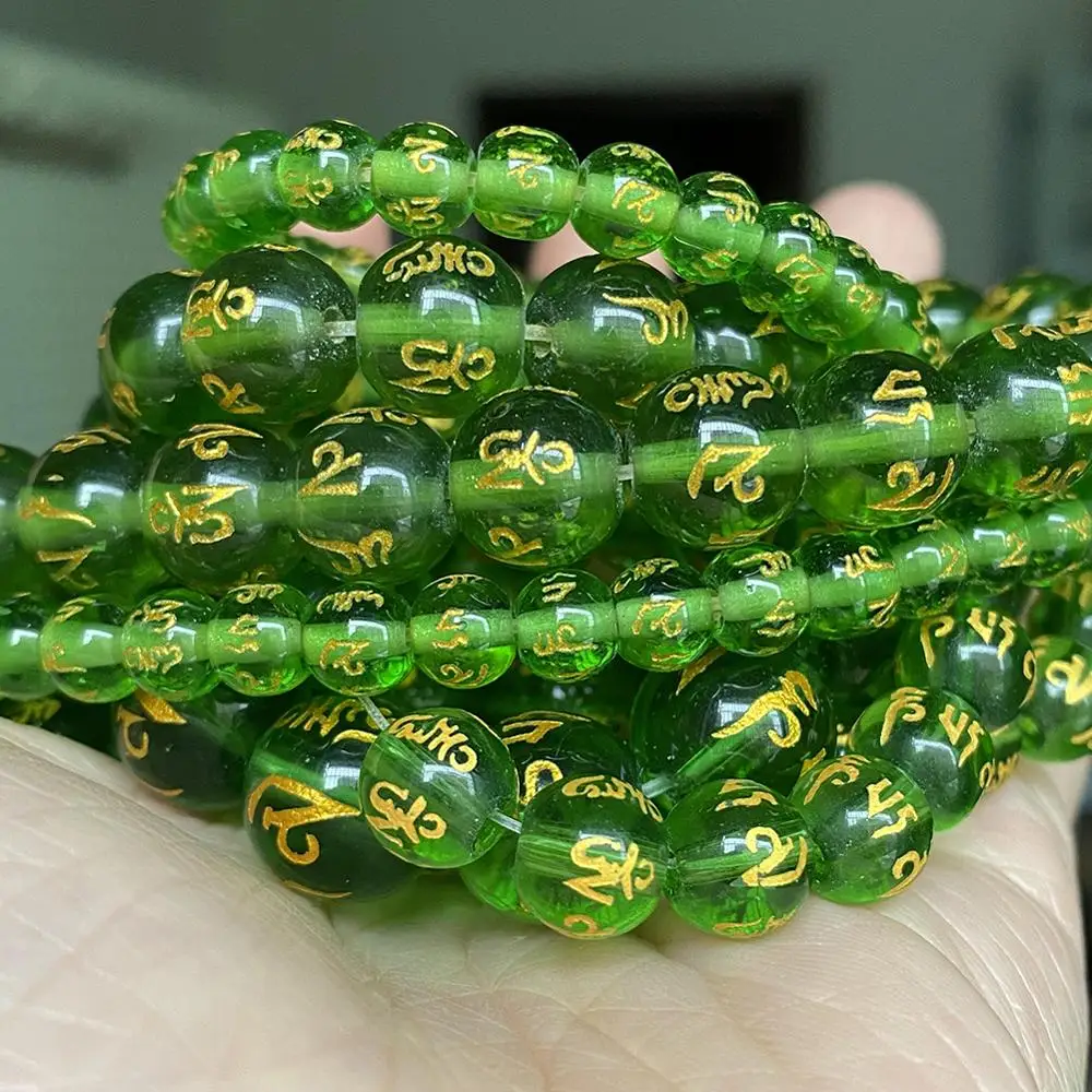 Stone nameNatural Green Agates Six Character Mantra Buddhist Scriptures Beads