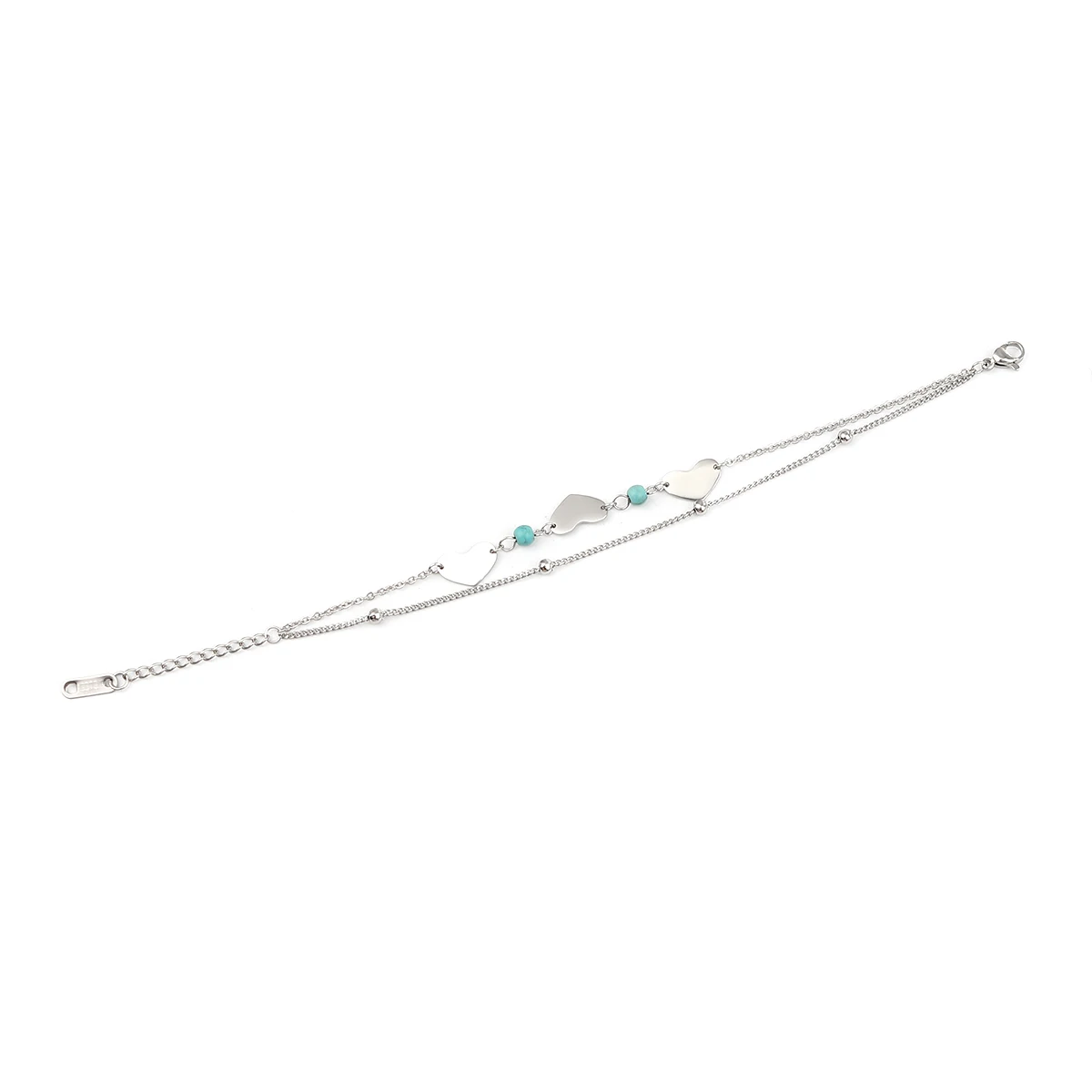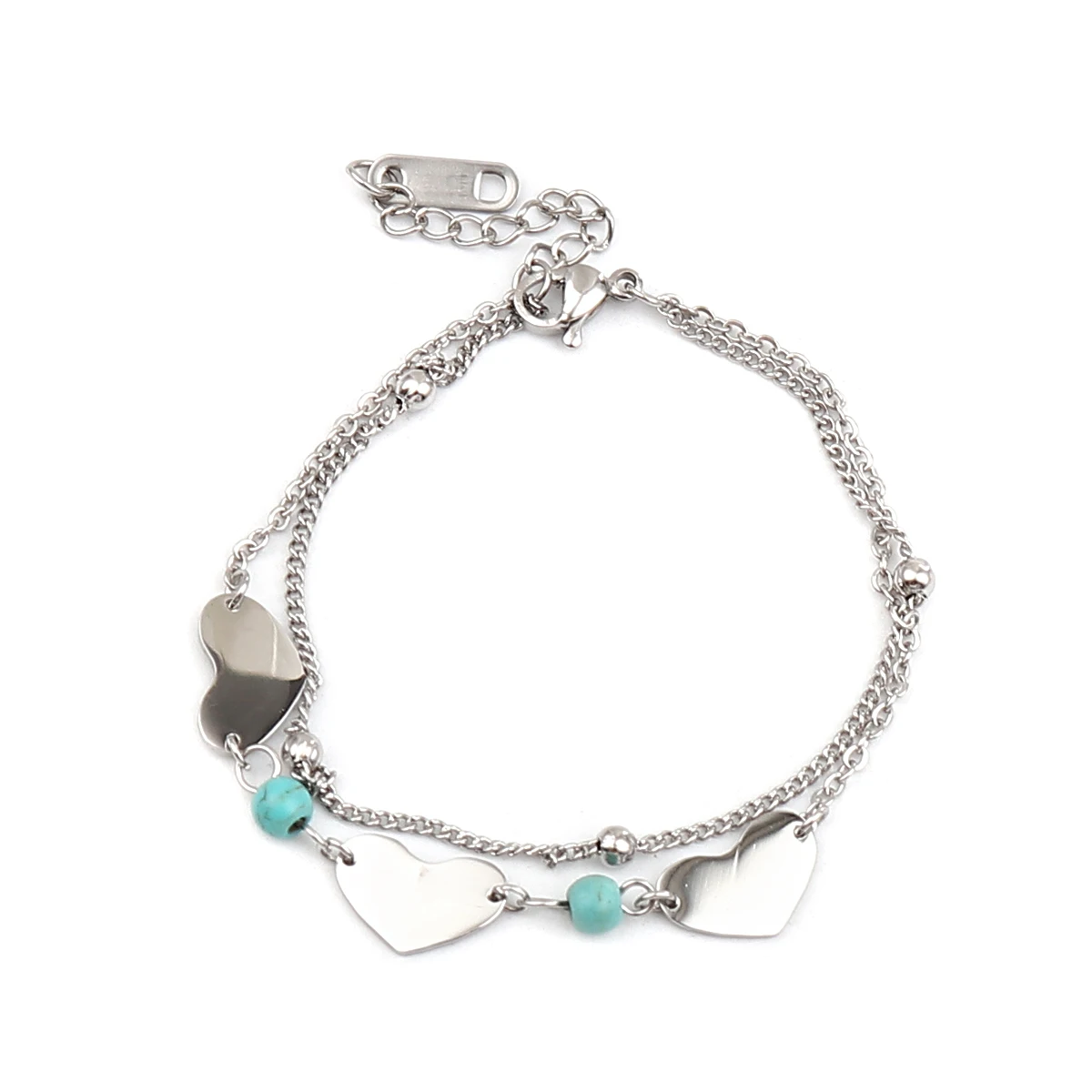 Женские браслеты из нержавеющей стали, серебристого цвета, с имитацией синего сердца, длиной 16,5 см (6 дюймов 48 дюйма), 1 шт.