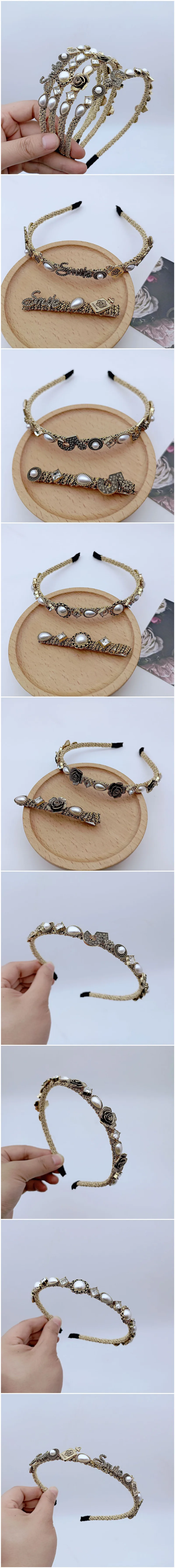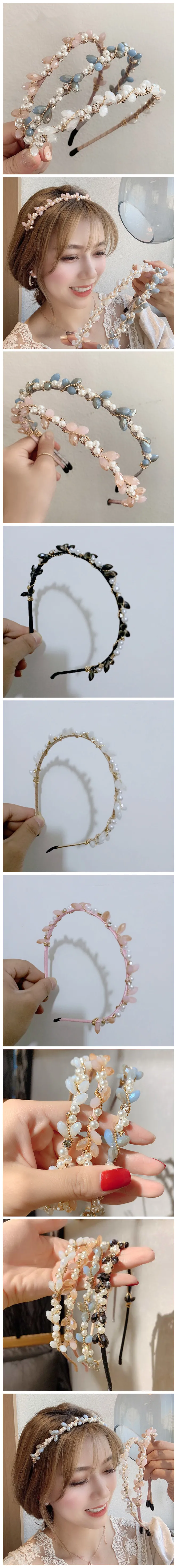 Тонкая Повязка на голову для волос в винтажном стиле с цветными кристаллами и жемчужинами