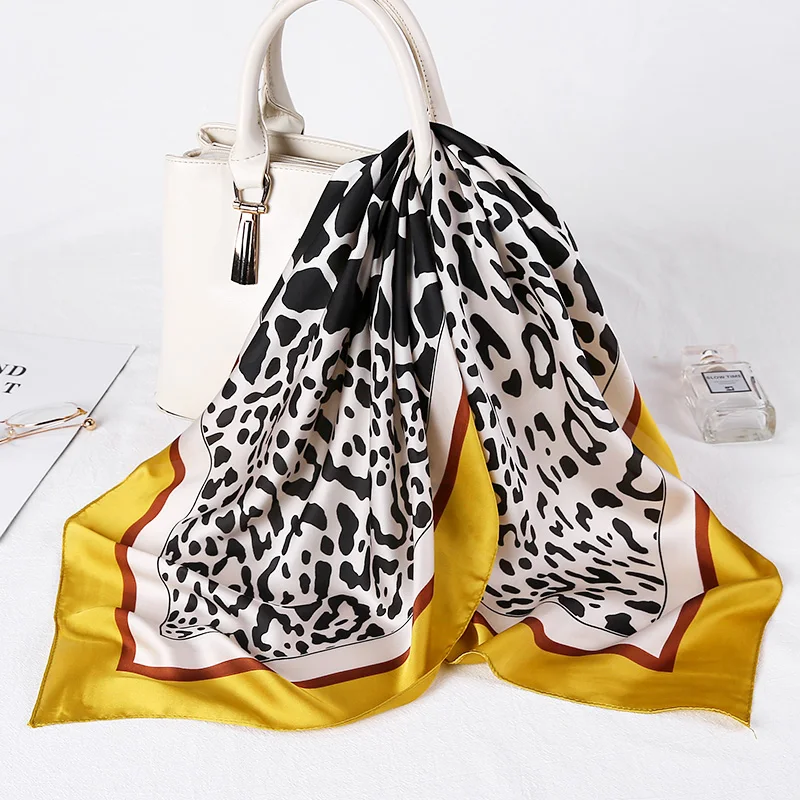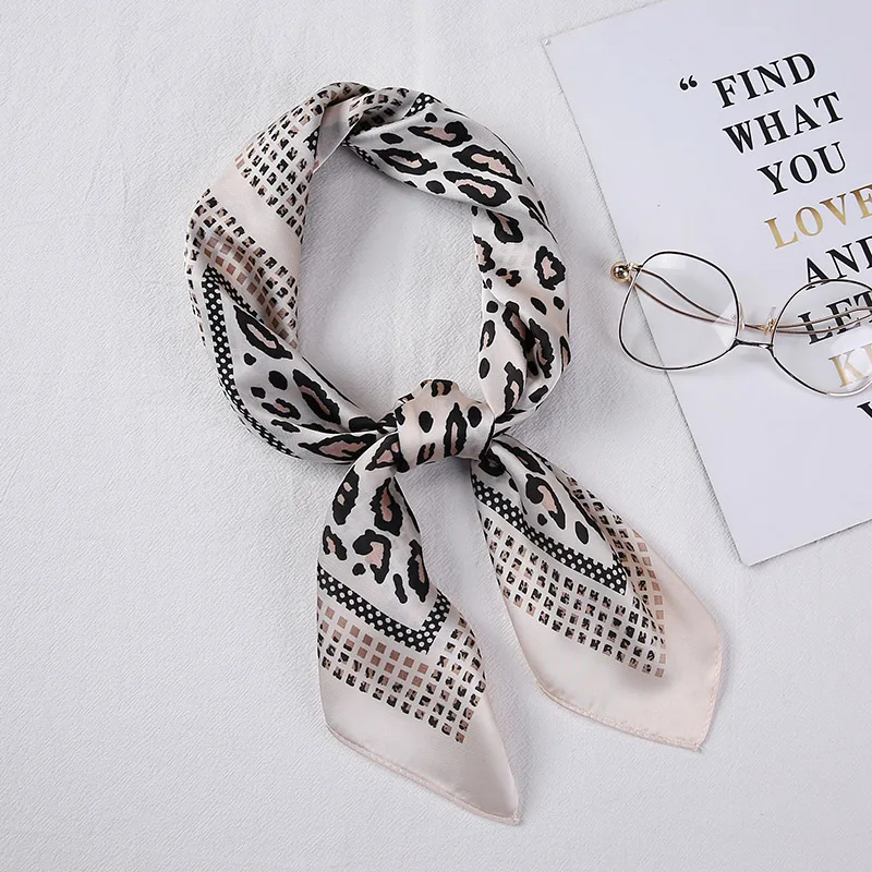 Бандана с леопардовым принтом, Модный женский Универсальный квадратный шарф, весенне-летний шелковый галстук-бабочка на голову, брендовый шарф-шаль