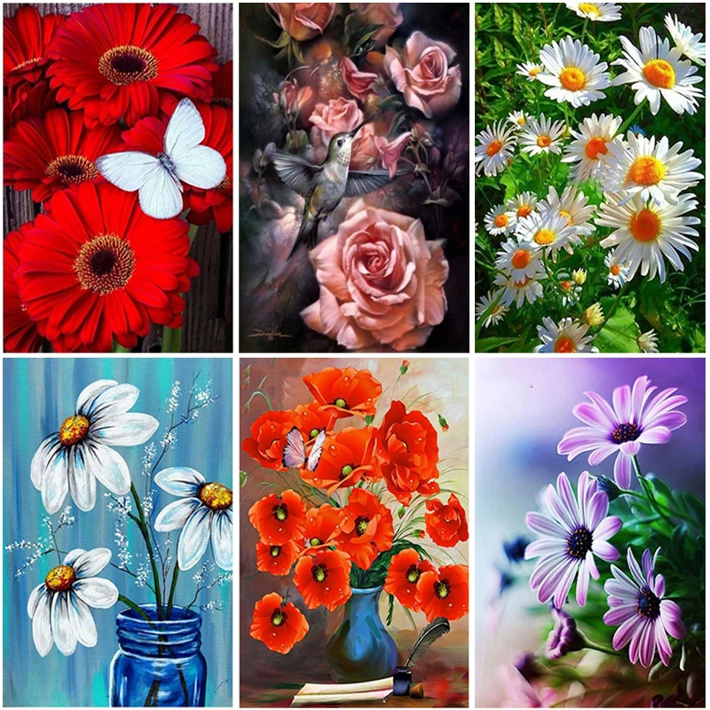 Полный квадратный круглый Просверленный пейзаж, картина, выложенная алмазами цветок Маргаритка Роза пейзаж Алмазная вышивка крестиком 5D домашний Декор подарок