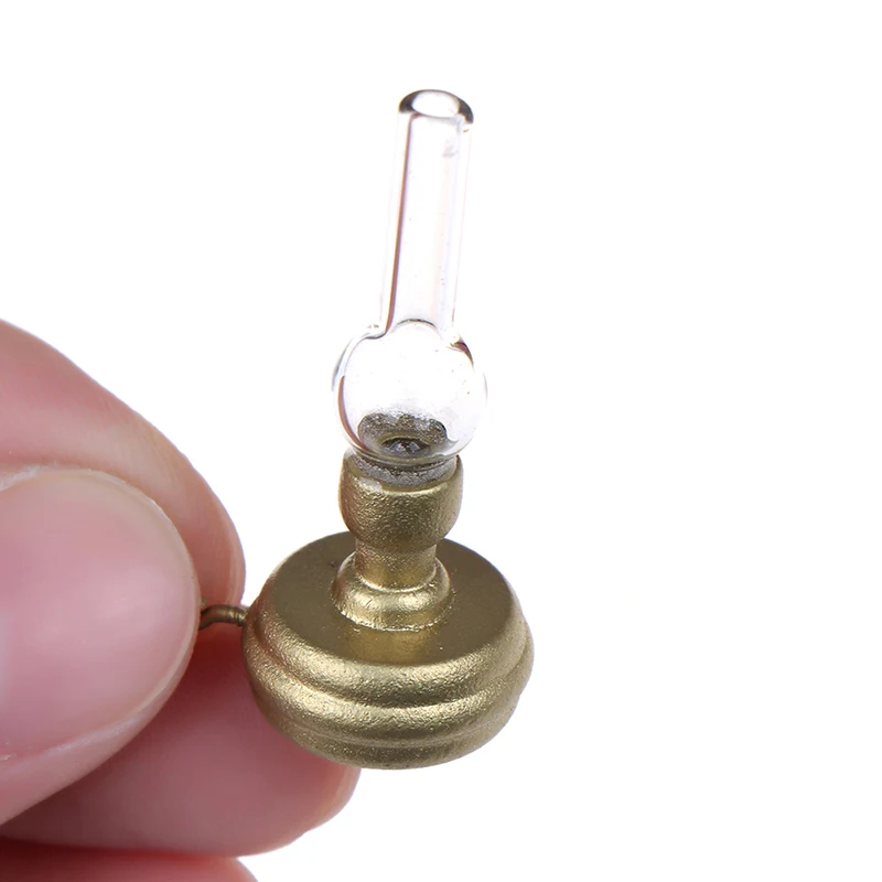 Стеклянный мини-подсвечник с медной основой, керосиновая лампа в стиле ретро 1:12, для самостоятельного изготовления, кукольный домик, детские игрушки