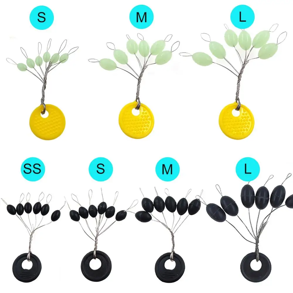10 шт 6 в 1 свечение черный Weightg пробки очень большой овал резиновой пробкой SS размеры S, M, L карп рыбалка поплавок пространство фасоли