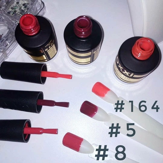 Среди 60 цветов я заказала мои любимые красные оттенки, 5, 8, 164. Гель лаки без липкого слоя! Каждая бутылочка имеет 8 мл, чего достаточно для длительного пользования. Пузырьки полные. Лаки густые, цвета насыщенные. Я наносила оттенок 5, бордовый, одним слоем. Лак не растекается. Кисть удобная, широкая. Сушила под LED/UV лампой 20 секунд . Наносила лак 8 дней назад. Ногти у меня не очень отросли, и маникюр выглядит как свежий! Добралась посылка за 2 недели, каждый лак был хорошо упакован в отдельную мягкую подушку. Часто заказанные мною лаки терялись, или попросту шли безтреком, но не сейчас. Посылка отслеживалась всю дорогу, до самого почтового отделения!