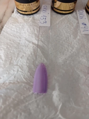 Оттенок 227, самый светлый из трех которые я приобрела, он менее густой. Поэтому его, лучше наносить тонким слоем 2 раза. При обильном нанесении не много растекается и не даёт равномерное закрашивание. Нет липкого слоя и это плюс, запах не токсичный, сохнет очень быстро. Я очень довольна, качеством. Флакон стеклянный, наполняемость полная, удобная широкая кисточка. Доставка менее трех недель, упакованы в мягкие формы.