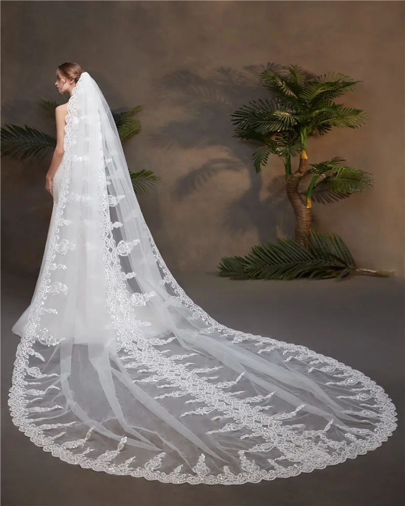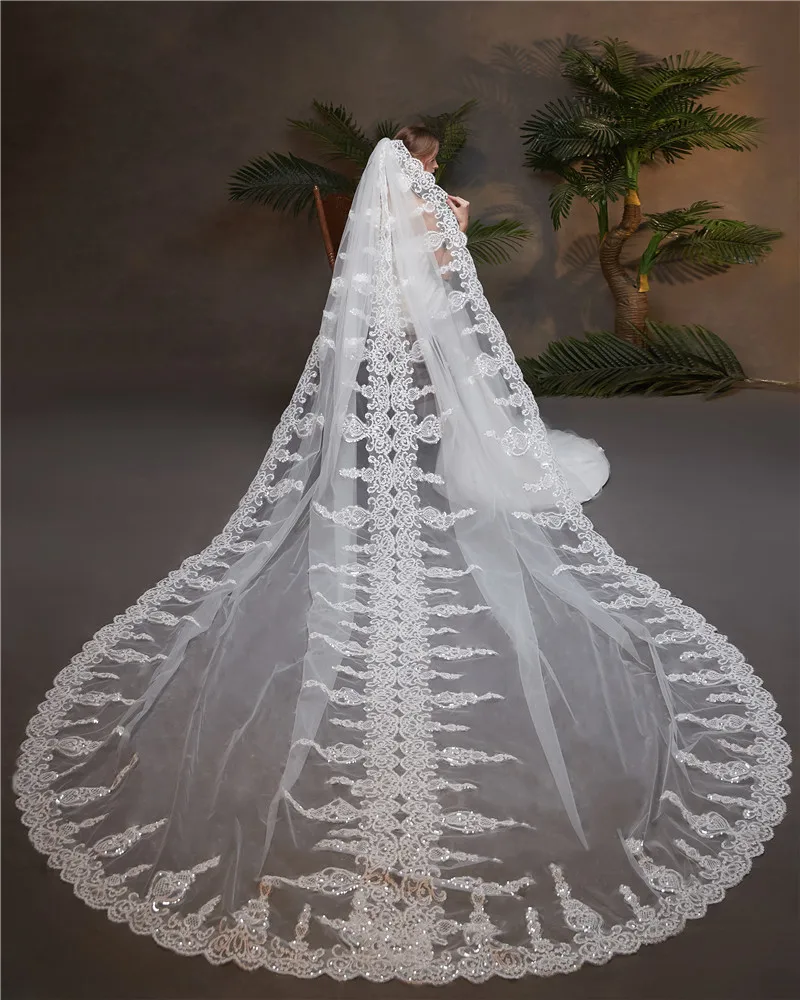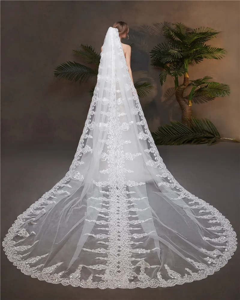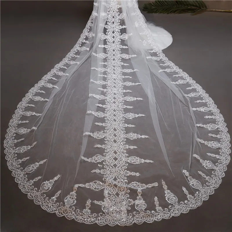 2021 свадебный головной убор свадебная вуаль мягкая сетка с блестками Кружева собор со шлейфом свадебная фата, длинная WAS10222