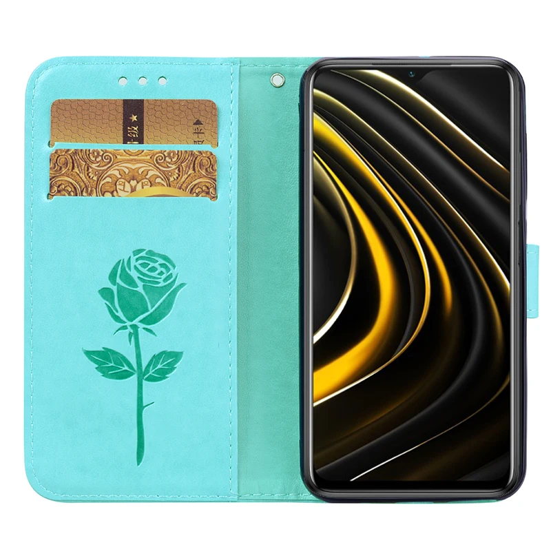 Кожаный чехол-бумажник с розами для Xiaomi Mi Poco X3 NFC Redmi 9A ...