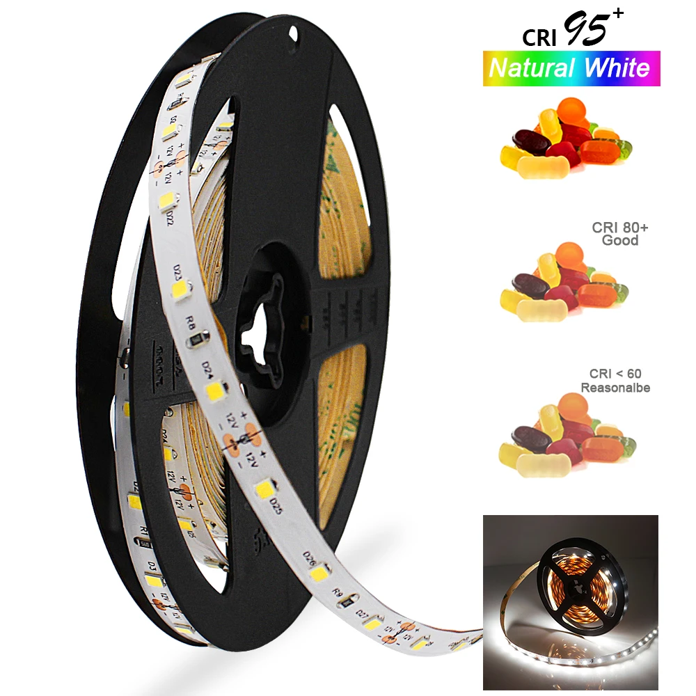 Высокая CRI 95 Светодиодная лента SMD2835 DC 12V для кухонного освещения подсветка автомобиля тв-комната домашняя лестница лампа лента Рождественские огни Декор 300 светодиодов
