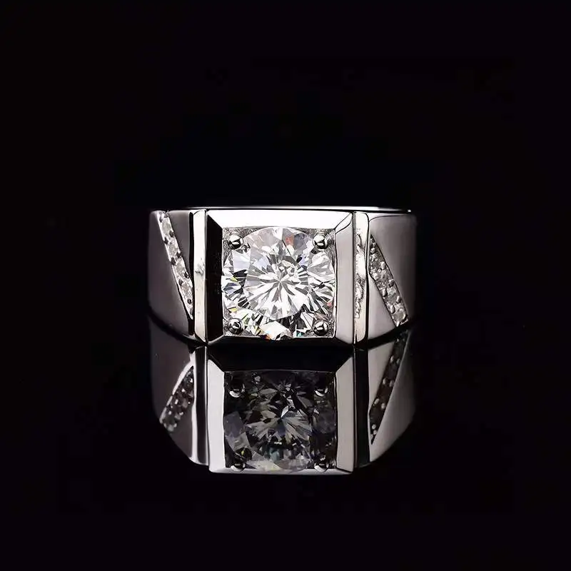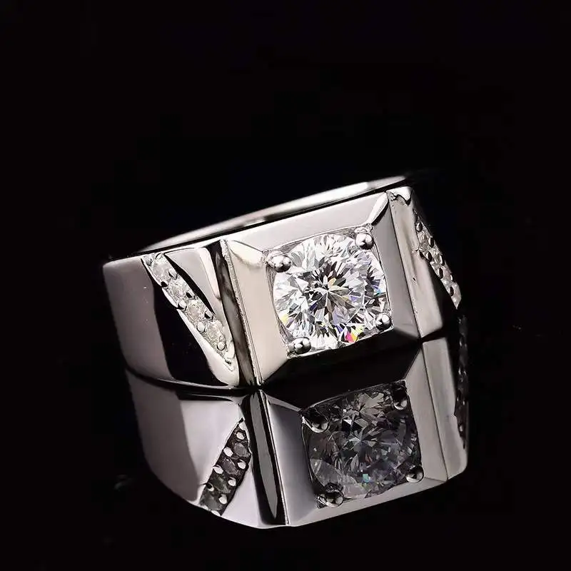 Кольцо мужское из серебра 925 пробы с платиновым покрытием, 1-2 карата