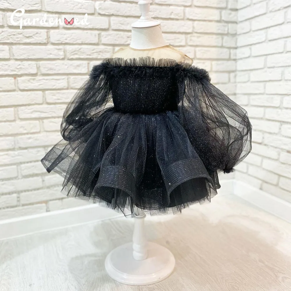 Простое бальное платье с блестками, праздвечерние платье для девочек, короткое платье принцессы, Пышное Платье для рождественской вечевечерние НКИ, Тюлевое Пышное Платье для девочек