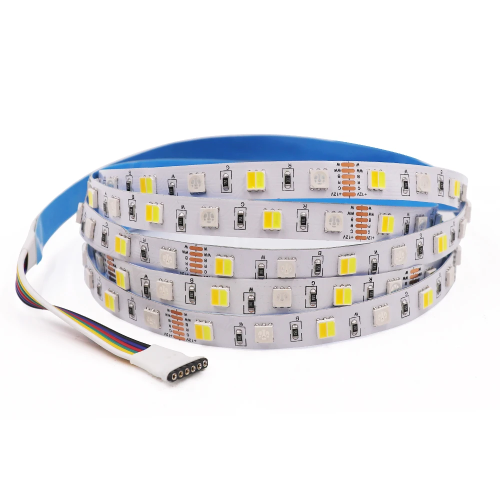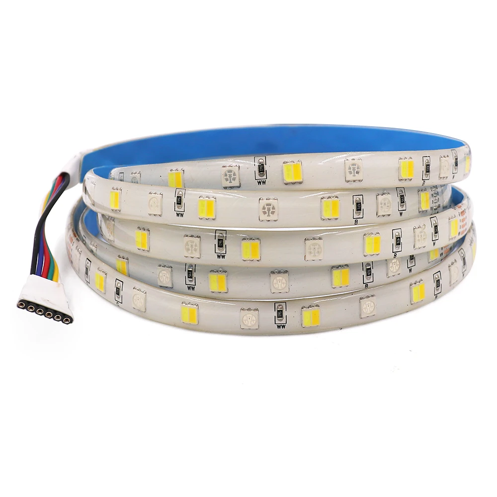 Светодиодная лента RGBCCT, 12 В, 24 В, гибкая светодиодная лента, Диодная, SMD5050, 60 светодиодовм, водонепроницаемая, светодиодсветильник па, холодный теплый белый свет, 5 м