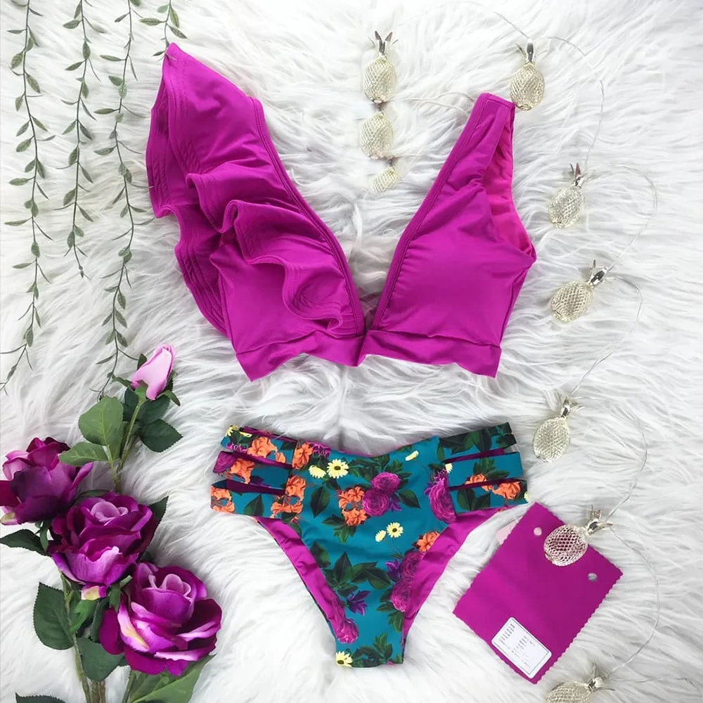 2021 сексуальные бикини с рюшами, женский купальник, бразильские бикини, купальный костюм с пуш-ап, пляжная одежда