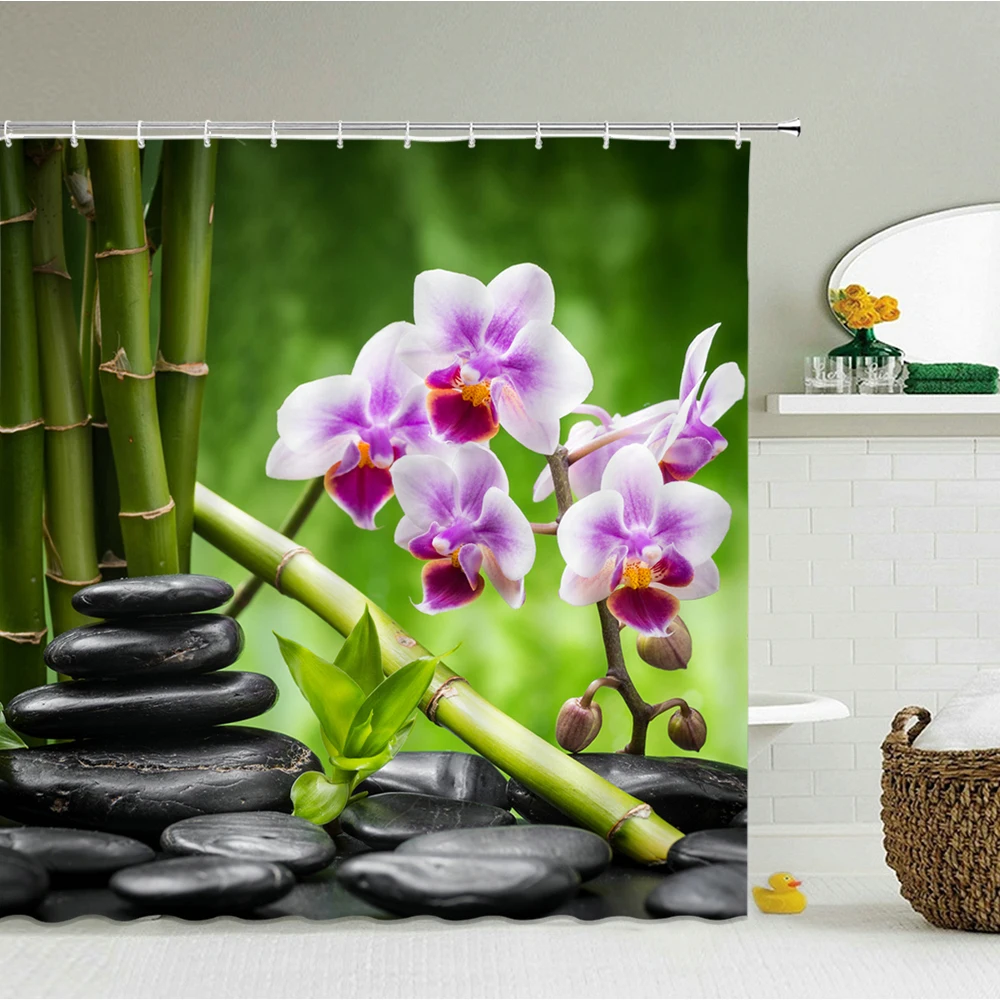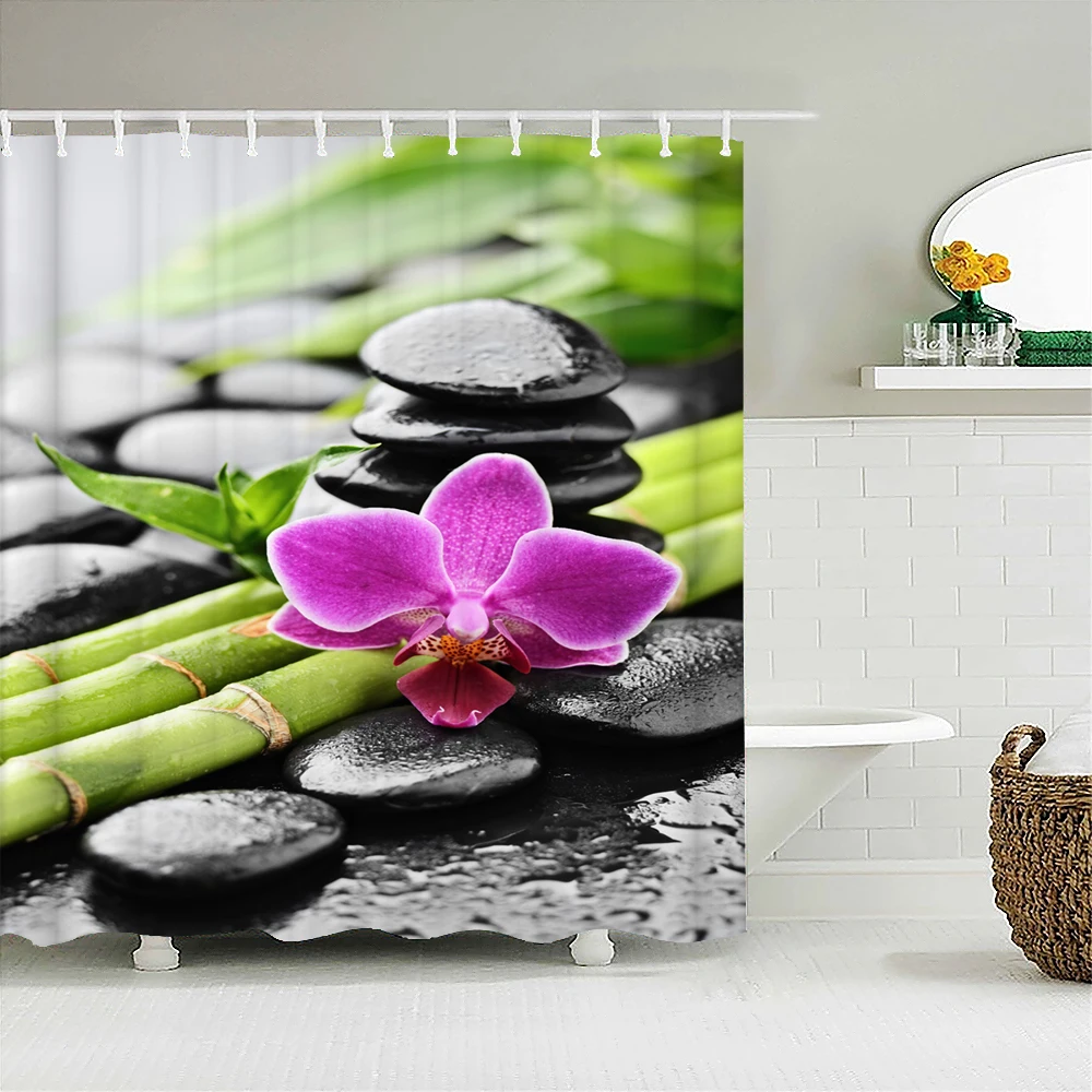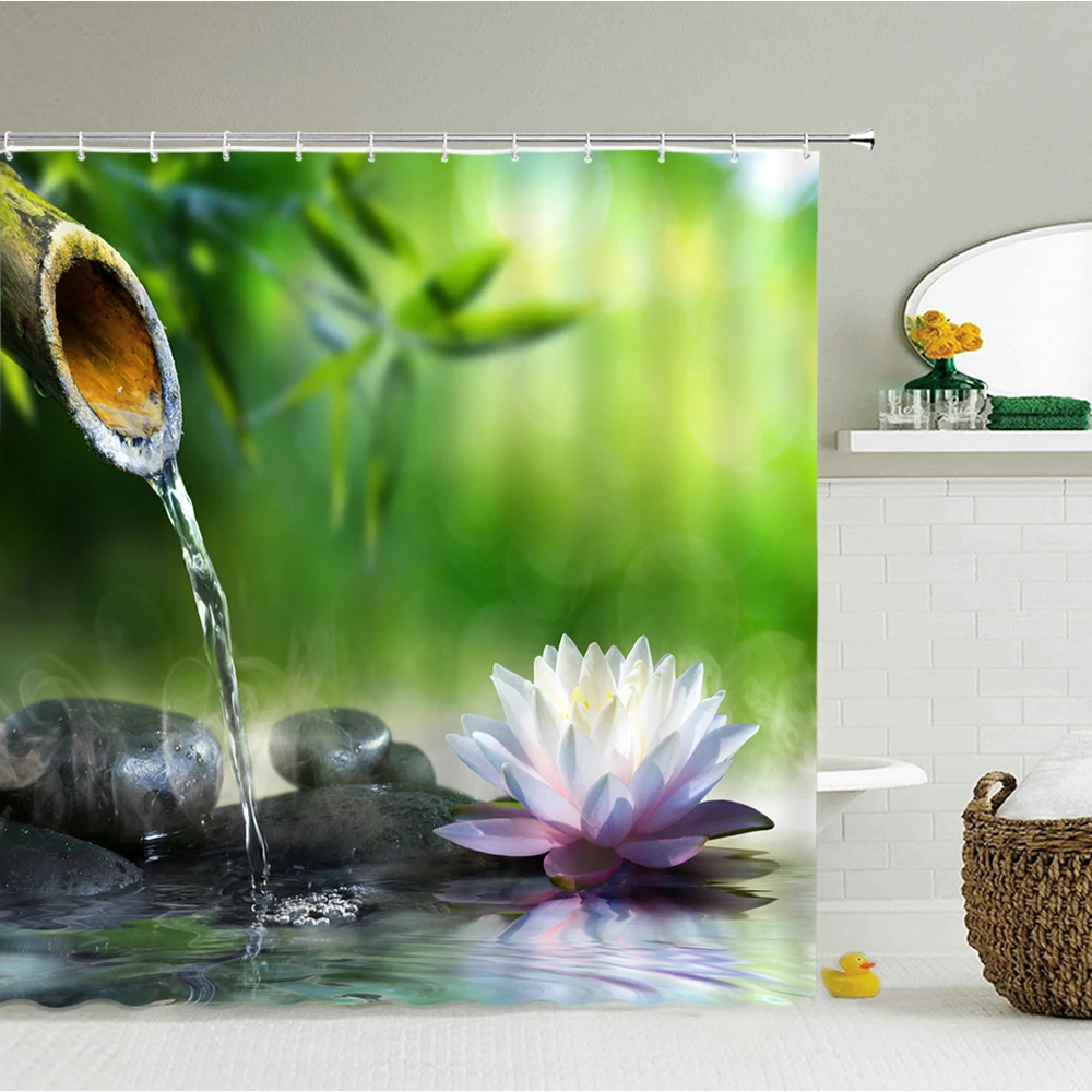 Занавеска для душа Zen из бамбука, 3D занавеска для ванной комнаты, вода, зеленый бамбук, Будда, Водонепроницаемый моющийся экран