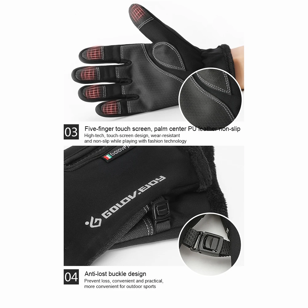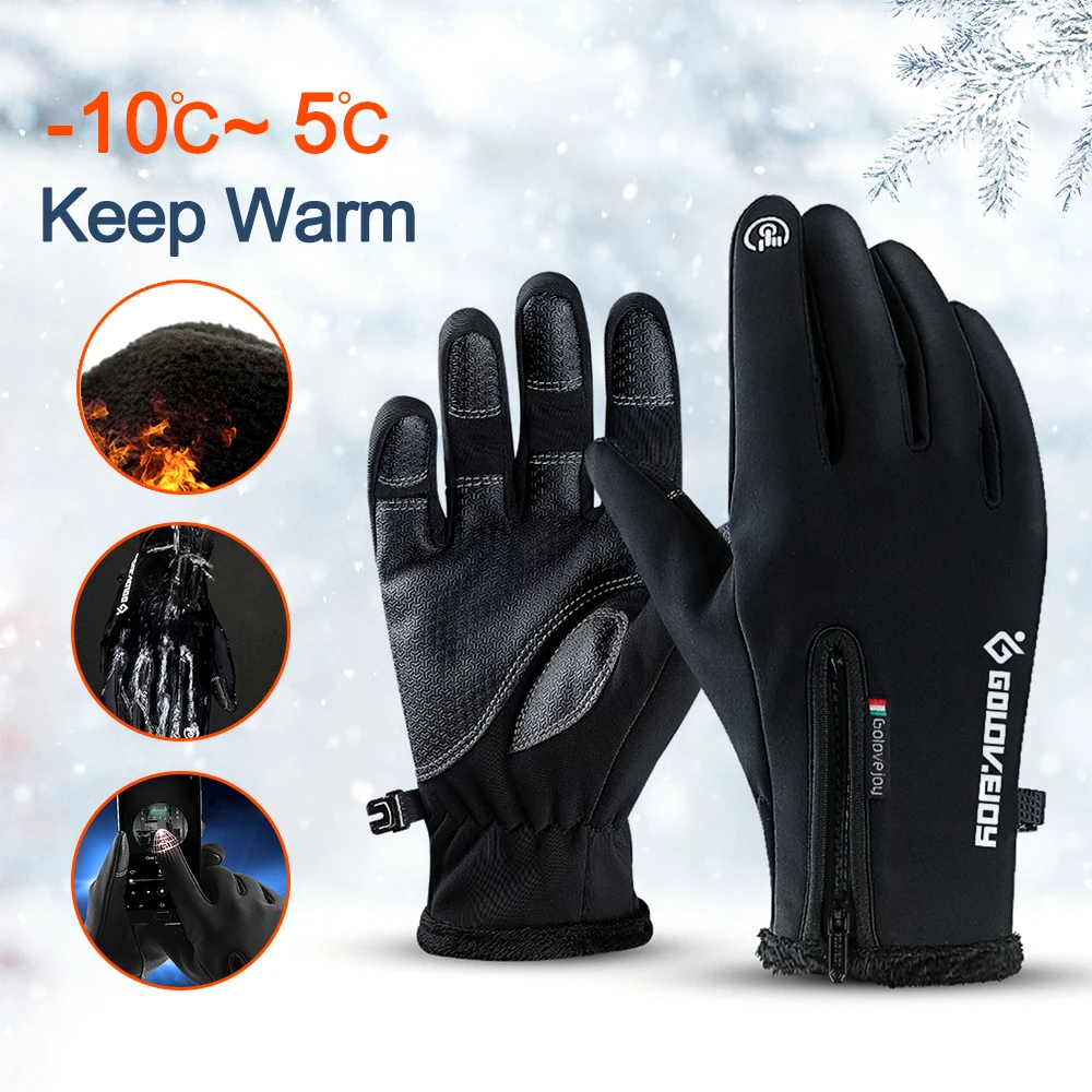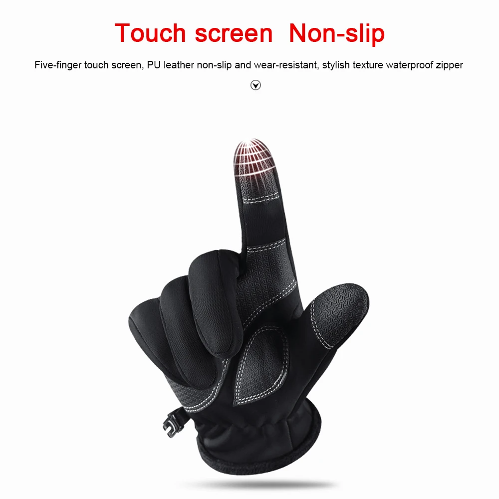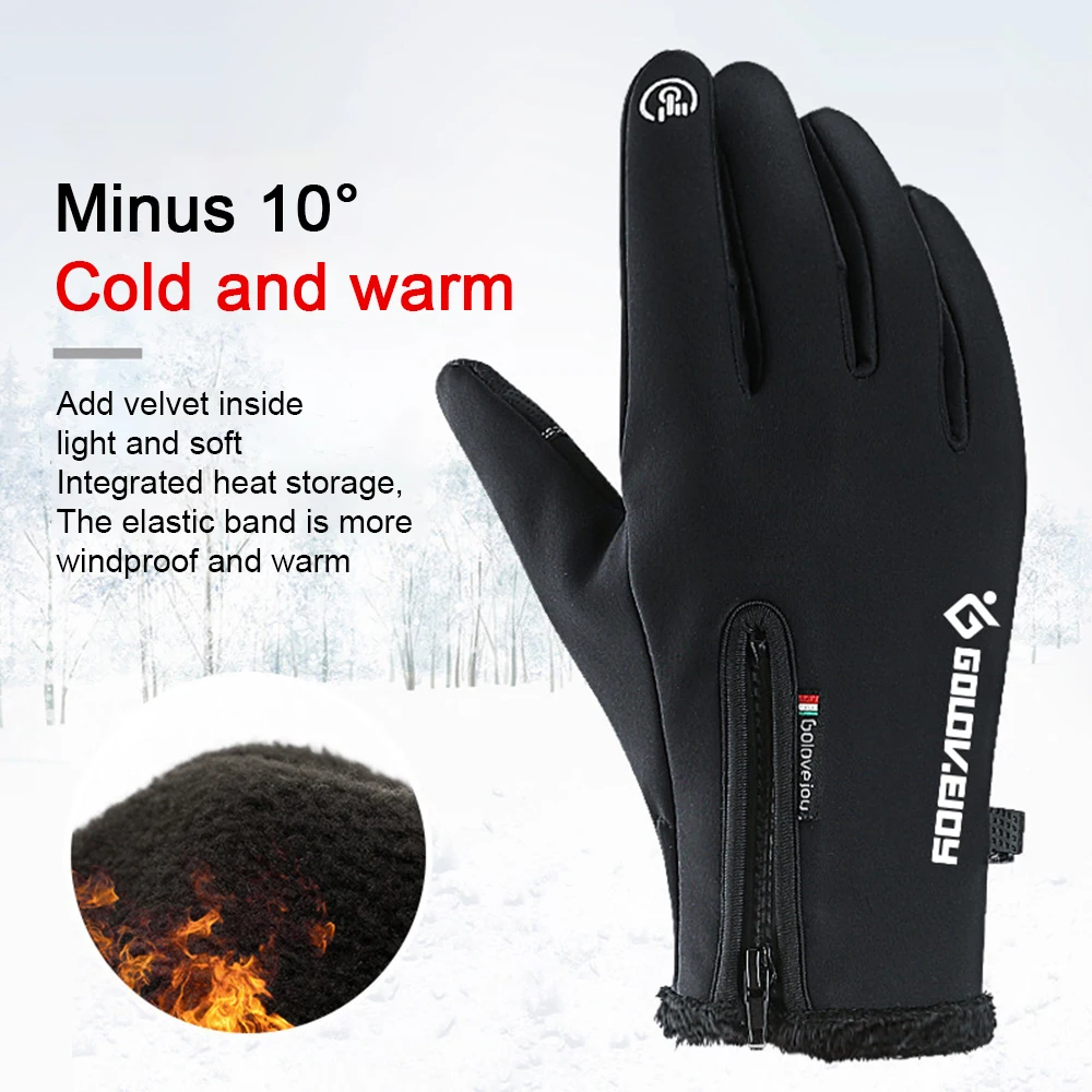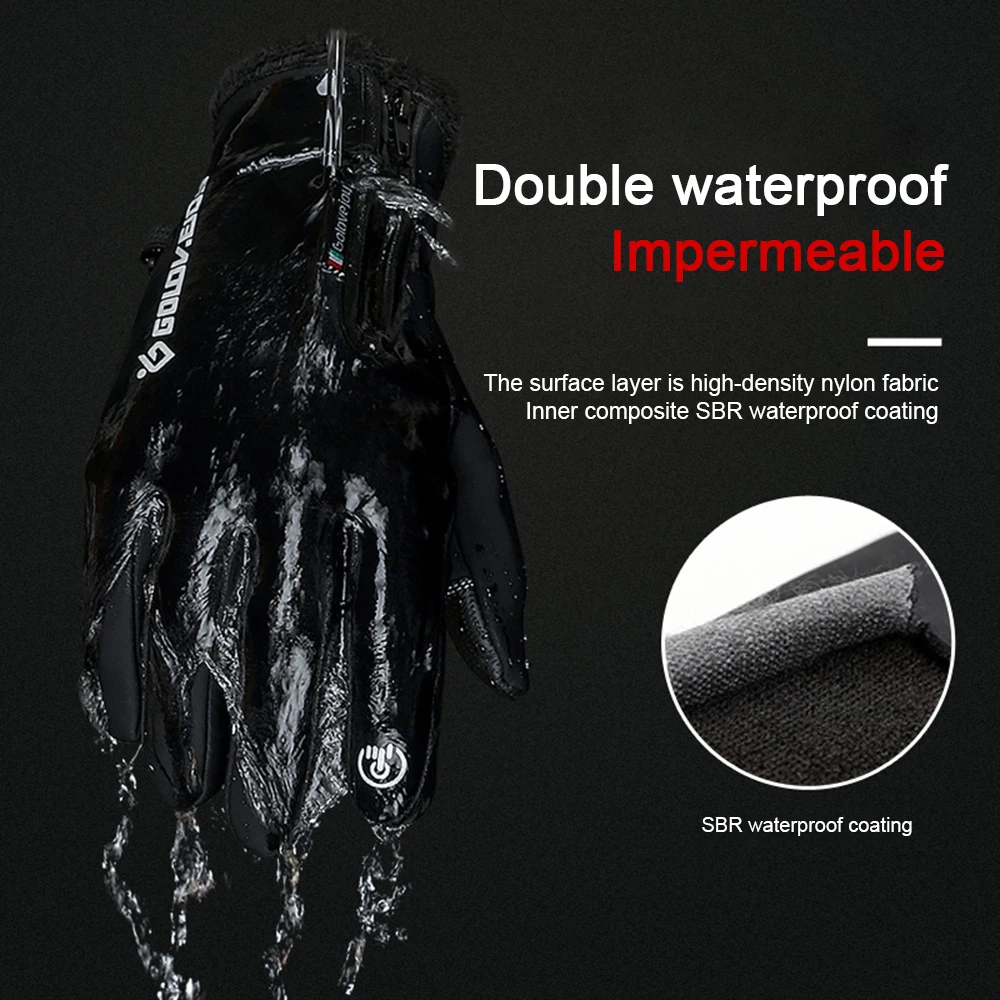 Зимние велосипедные перчатки, водонепроницаемые плюшевые велосипедные теплые перчатки, уличные лыжные мотоциклетные ветрозащитные перчатки, нескользящие перчатки для сенсорного экрана