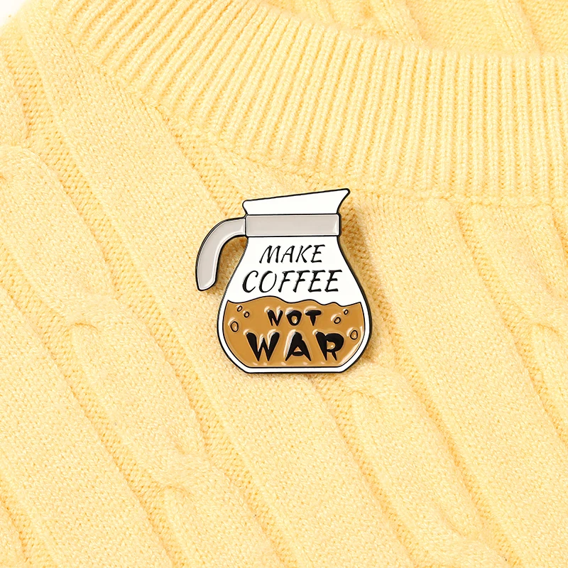 Эмалированные заколки с кофейным контейнером, Peace Love No war, броши, значки на лацкан, модные заколки, подарки для друзей, оптовая продажа, ювелирные изделия