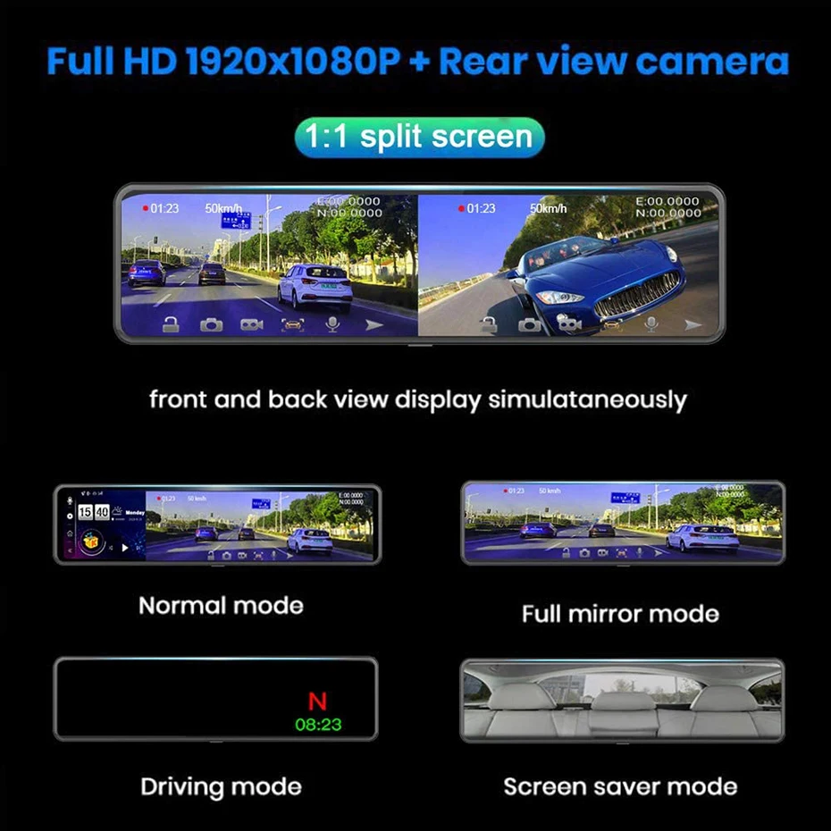 Тип установки Зеркальный рекордер, подходит для всех транспортных средств с зеркалом заднего вида Размер экрана (дисплея) 12 дюймов IPS Экран, 12 дюймов сенсорный экран Экран Датчик камеры Передний 1080P; Задний 1080P Объектив камеры 6 стеклянных линз Разрешение видео 1920*1080P Разрешение фото 8 м Видео-код H.264 Аккумулятор Необходимо подключить питание ACC Языки OSD Английский, Русский,Испанский, Японский, корейский и т. Д... Основные характеристики G-сенсор, циклическая запись, обнаружение движения, монитор парковки, отображение времени и данных, изображение заднего хода, ночное видение, Автоматическое включение/выключение, микрофон Карта памяти Карта Micro SD, класс 10 и 16 Гб до 64 Гб (не входит в комплект) Обновление задней камеры Задняя камера с кабелем 6 метров Добавить функции Ночное видение, Wifi, ADAS, 4G... Обратите внимание О видео Наш Автомобильный видеорегистратор FHD 1080P, должен использовать высококачественную tf-карту класса 10, любую низкую/низкую скорость tf-карты, которая не может поддерживать наши видеорегистраторы, работает нормально, если вы не можете убедиться, что у вас хорошая TF карта, пожалуйста, купите нашу оригинальную tf-карту вместе