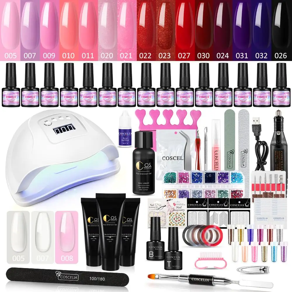 Набор гель для ногтей COSCELIA, УФ-лампа, электрическая дрель для ногтей, наборы для маникюра, инструменты для дизайна ногтей