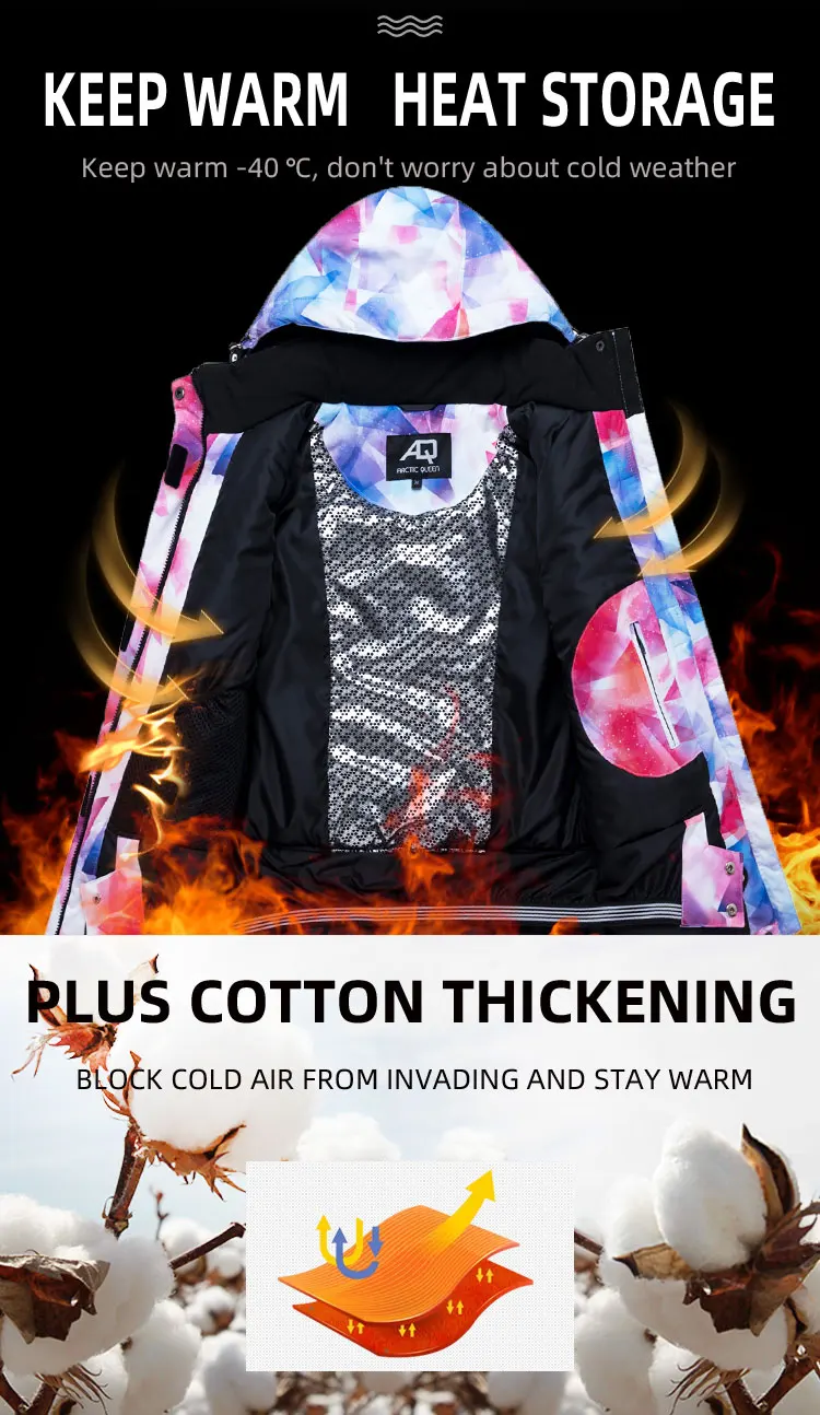 Новый Теплый Красочный лыжный костюм, женский водонепроницаемый вет...