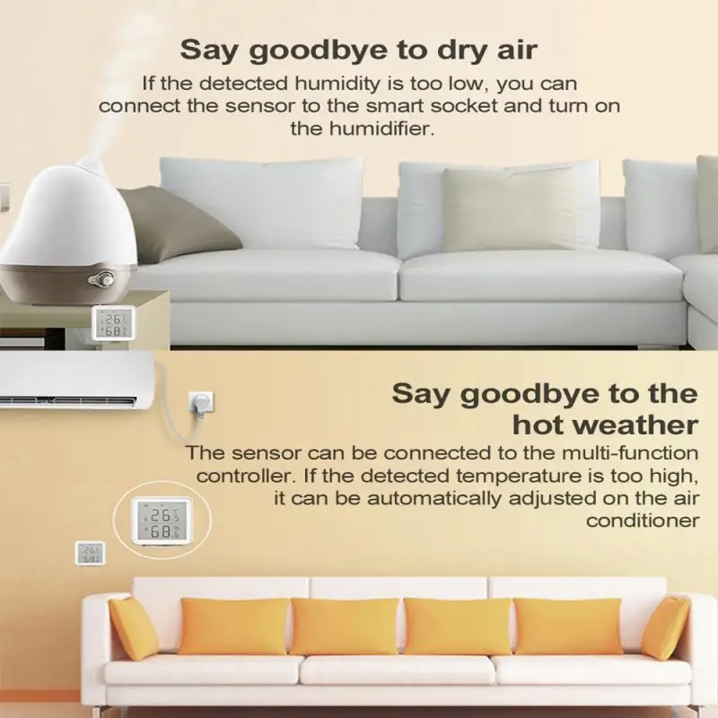 Через шлюз датчик температуры и влажности может быть соединен с другими смарт-устройствами в доме, чтобы улучшить нагрев и охлаждение в помещении и сделать ваш дом более комфортным