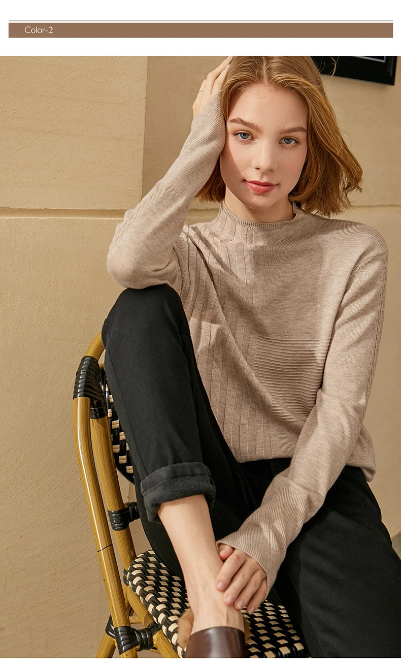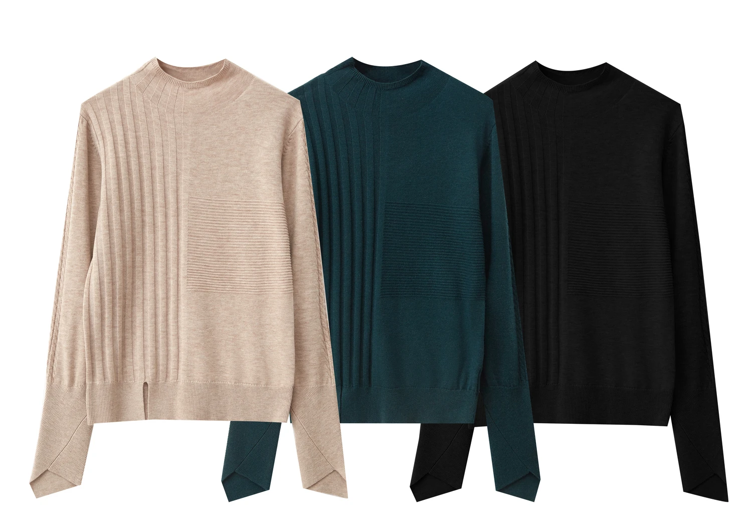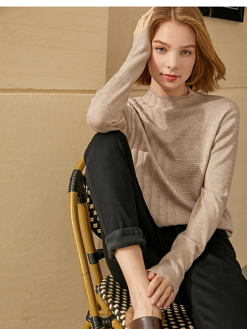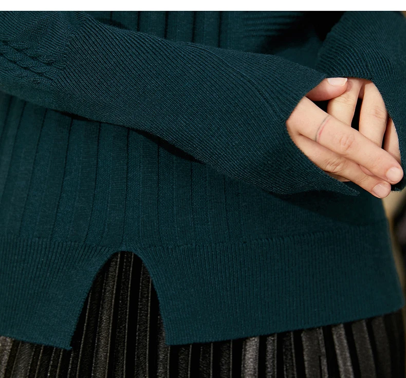 Свитер женский осенне-зимний однотонный с высоким воротом, 12040898