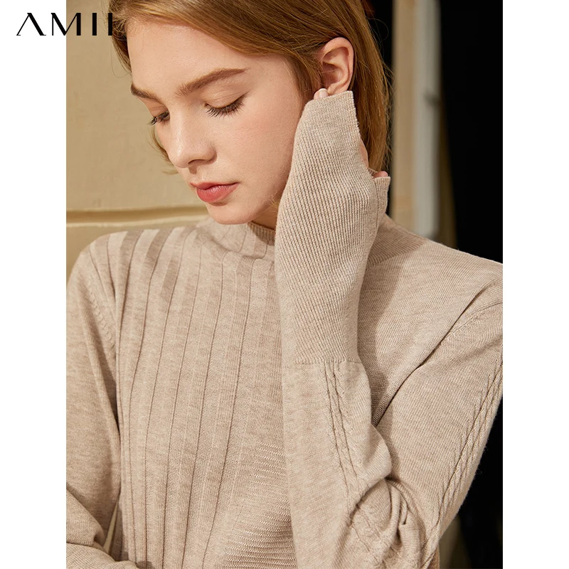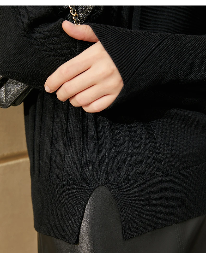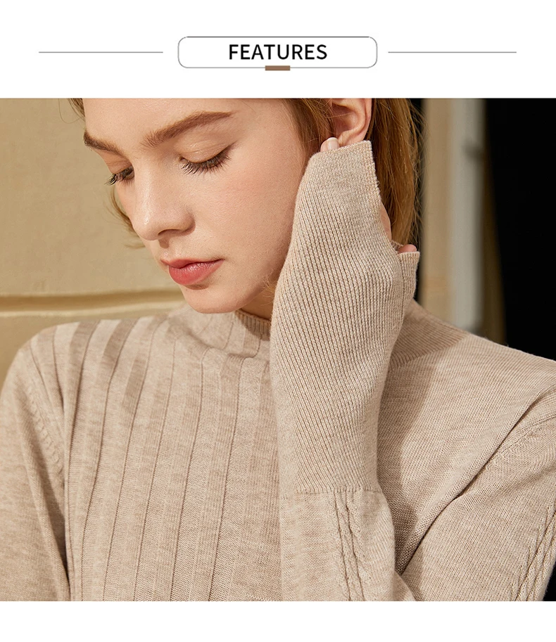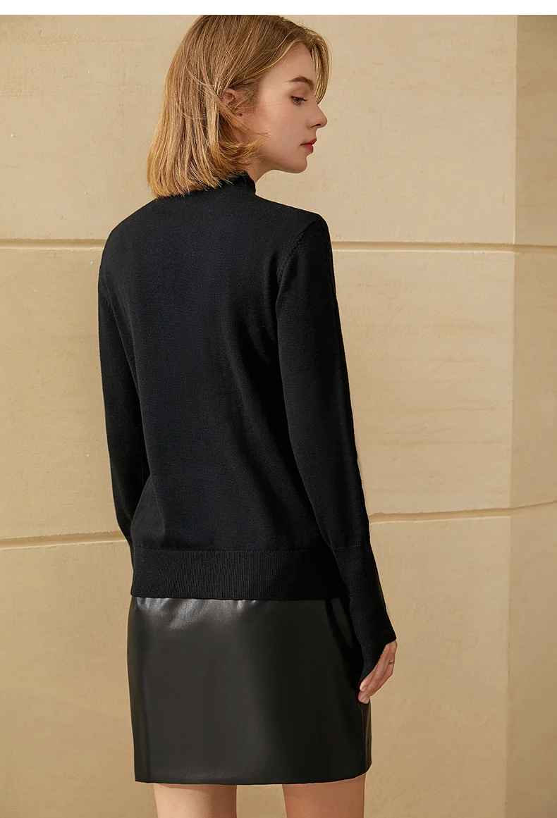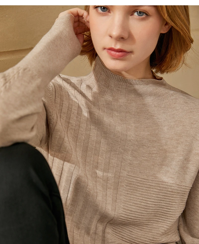 Свитер женский осенне-зимний однотонный с высоким воротом, 12040898