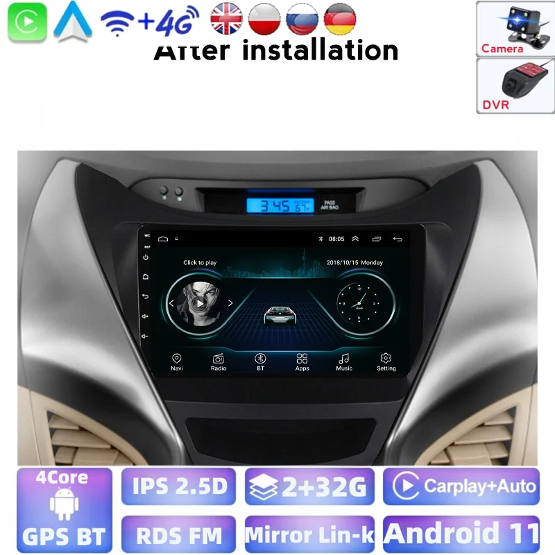 Автомагнитола для Hyundai Elantra 5 JK GD MD UD 2010-2016, мультимедийный видеопроигрыватель, GPS-навигация, Android 9,0, 2 Гб RAM, 32 ГБ ROM, BT DVR