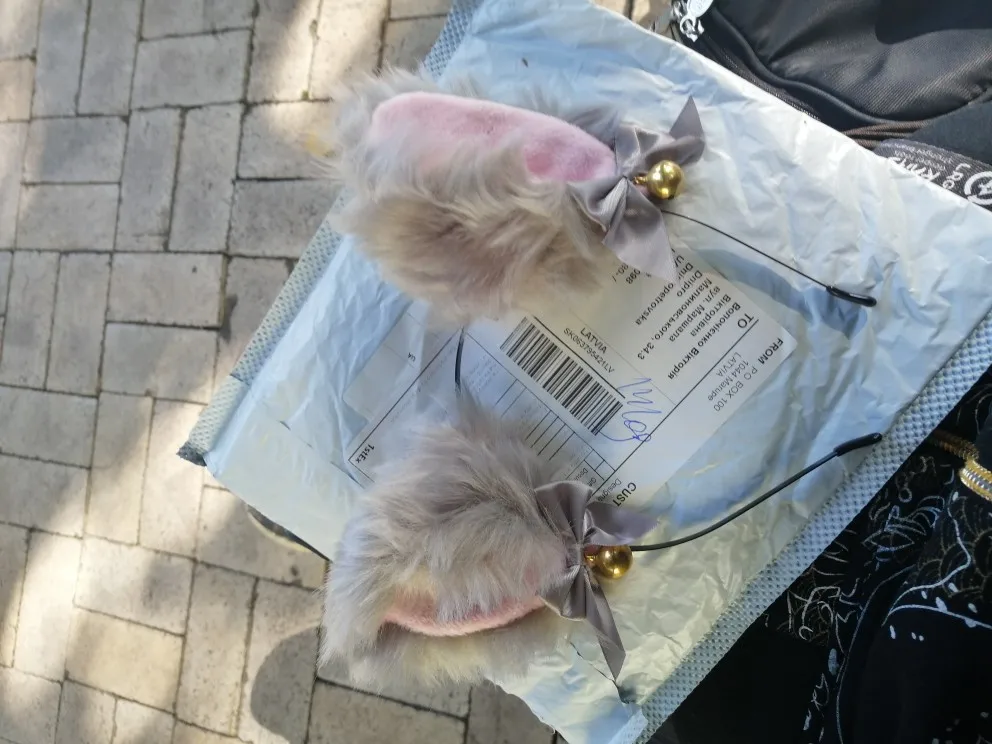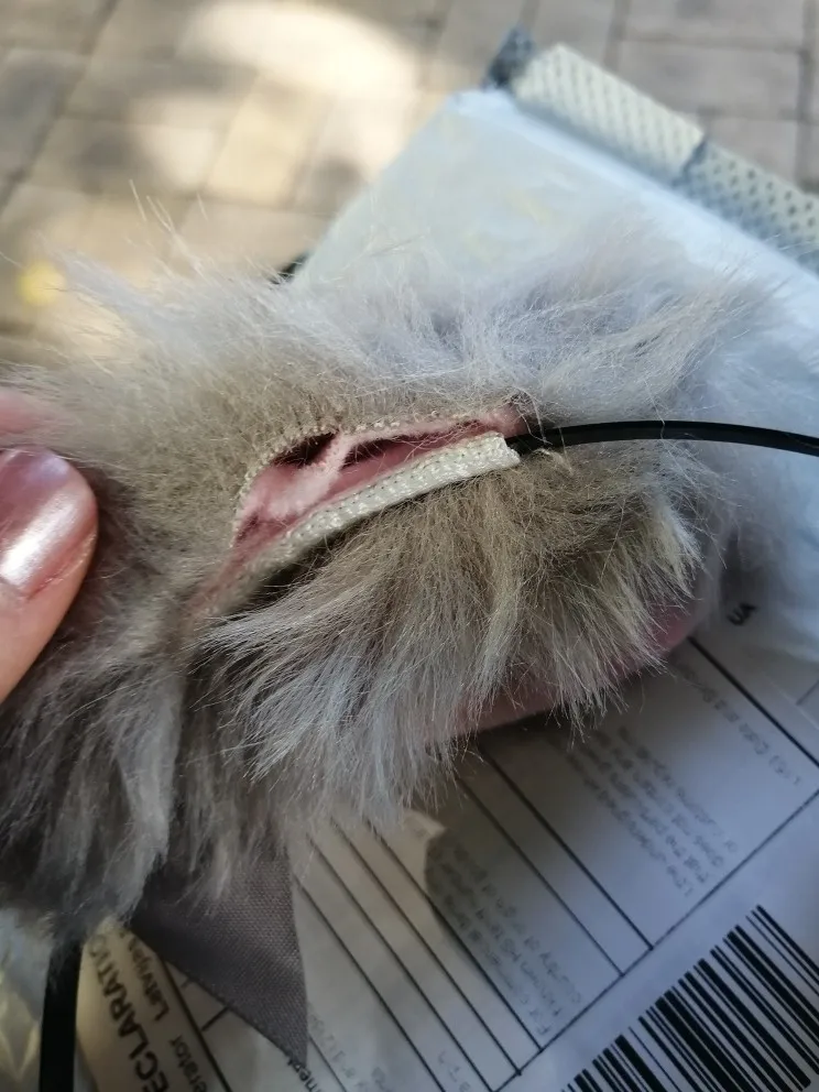 пришли мятые, обруч на половину головы, маленький, цвет не яркий, шерсть тут же выпадает.