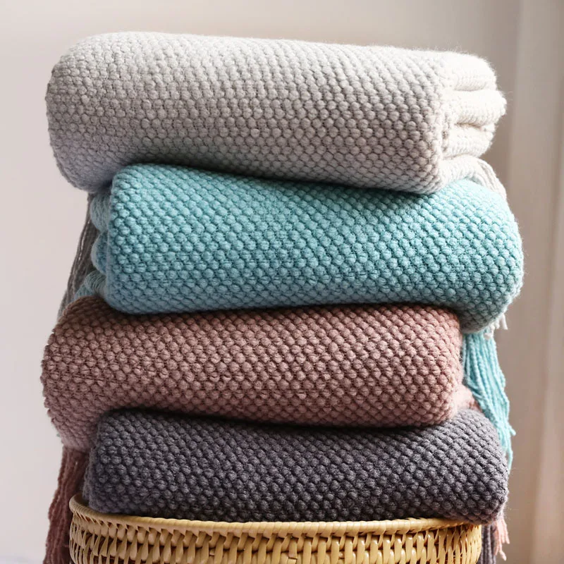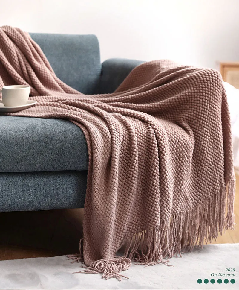 Текстильное городское домашнее декоративное утолщенное вязаное одея...