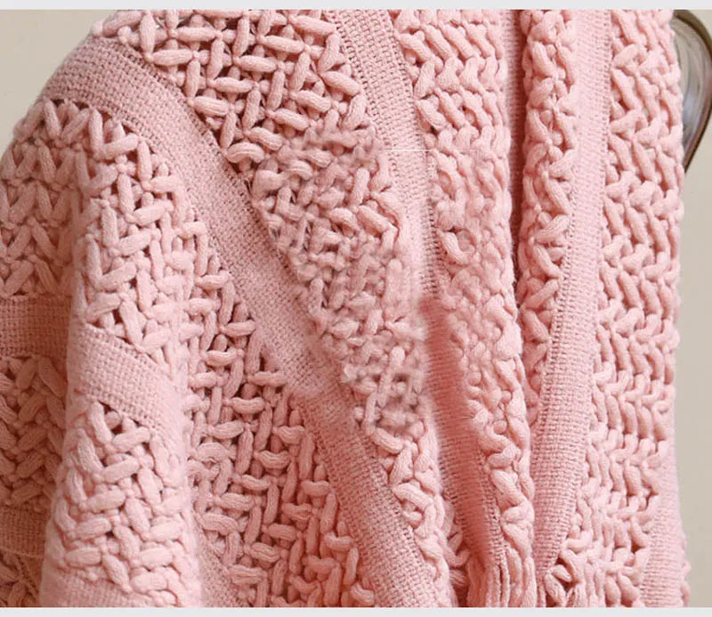 Нордическое вязаное одеяло, плед на диван, нитка, мягкое покрывало,...