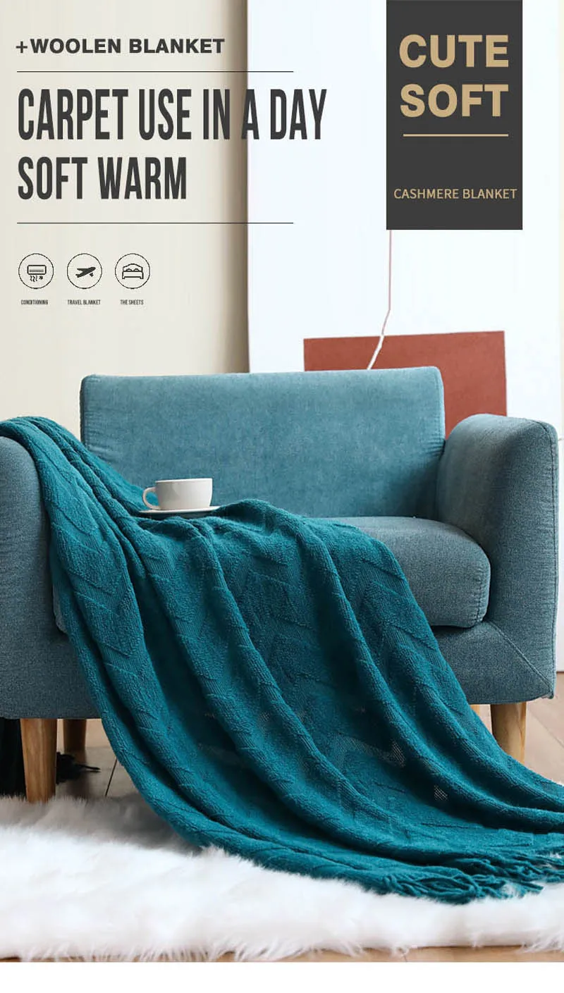 Вязаное одеяло, плед для путешествий, плед для кровати, дивана, офи...