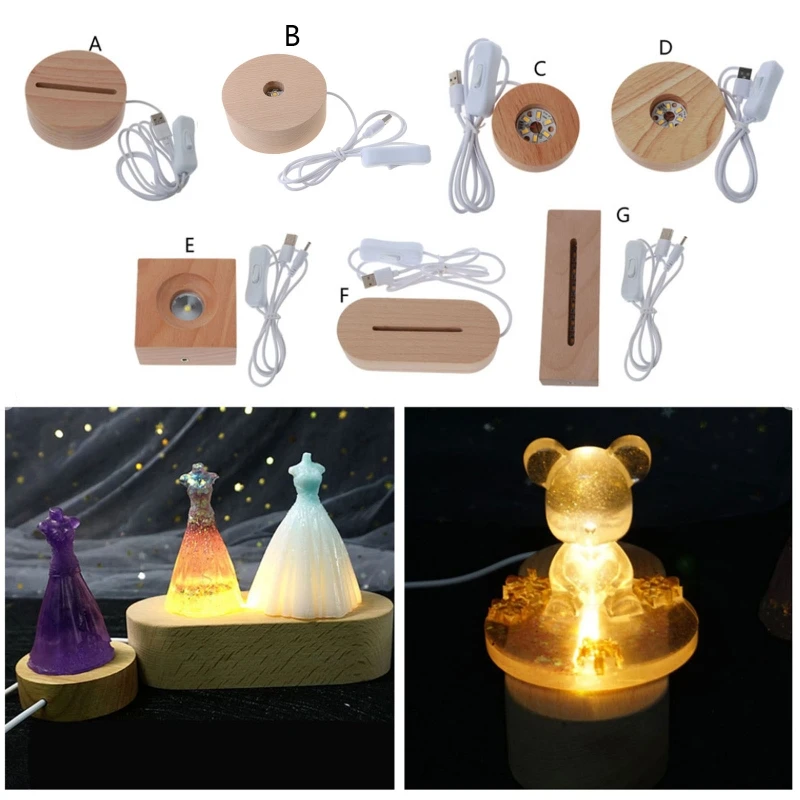 Прямоугольник дерева круглый овальные Форма светодиодный Дисплей на базе смолы для декорации деревянный ночной подсветкой подставка ремесла D04 20 дропшиппинг