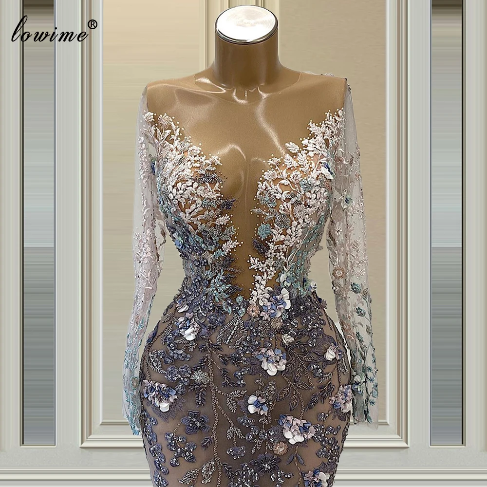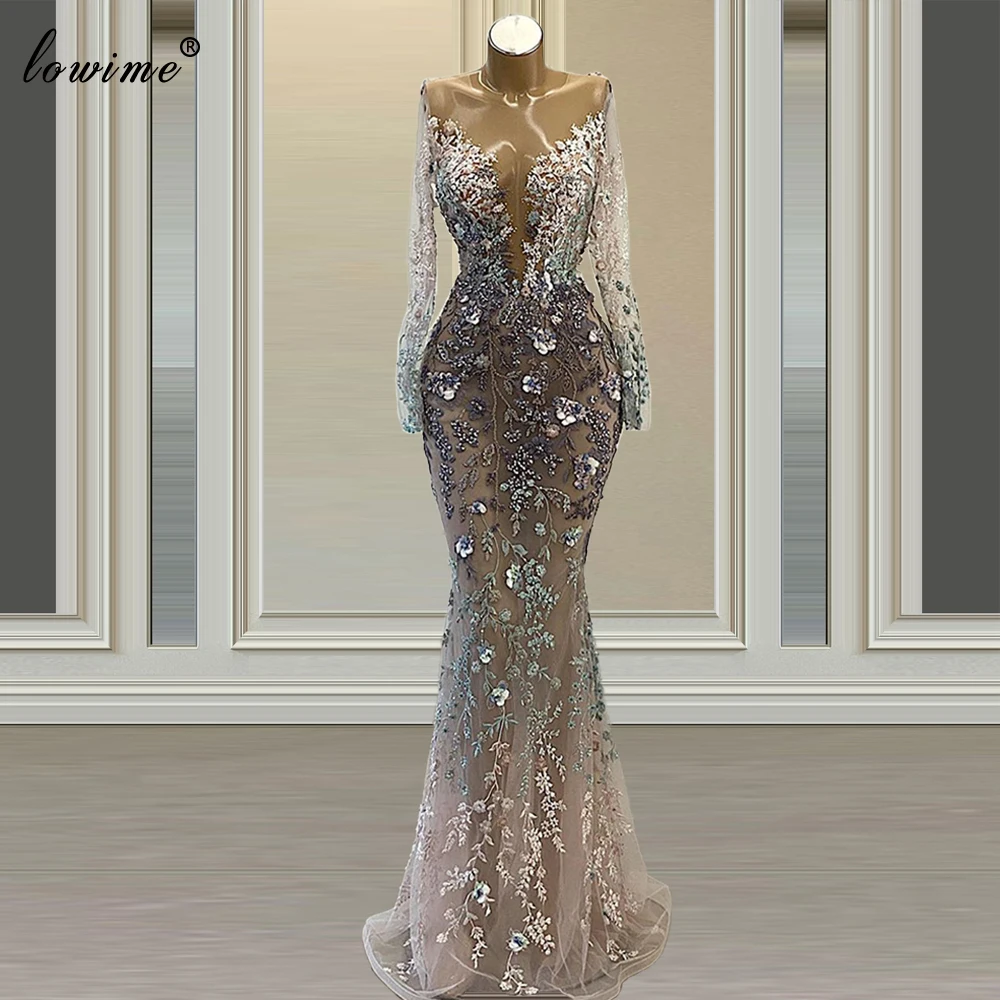 Прозрачные вечерние платья Дубай с цветами 2021, платья знаменитостей с длинным рукавом и бусинами для женщин, вечерние ночники, платья на заказ