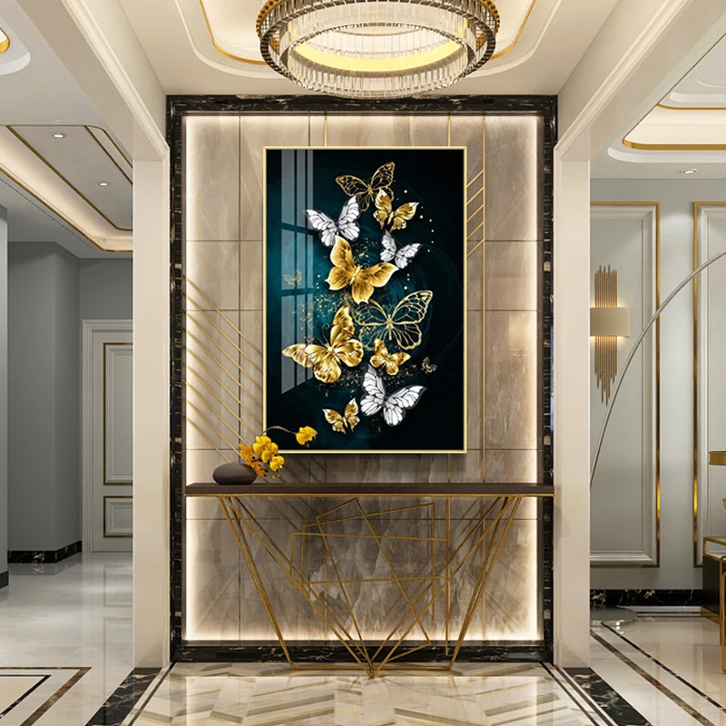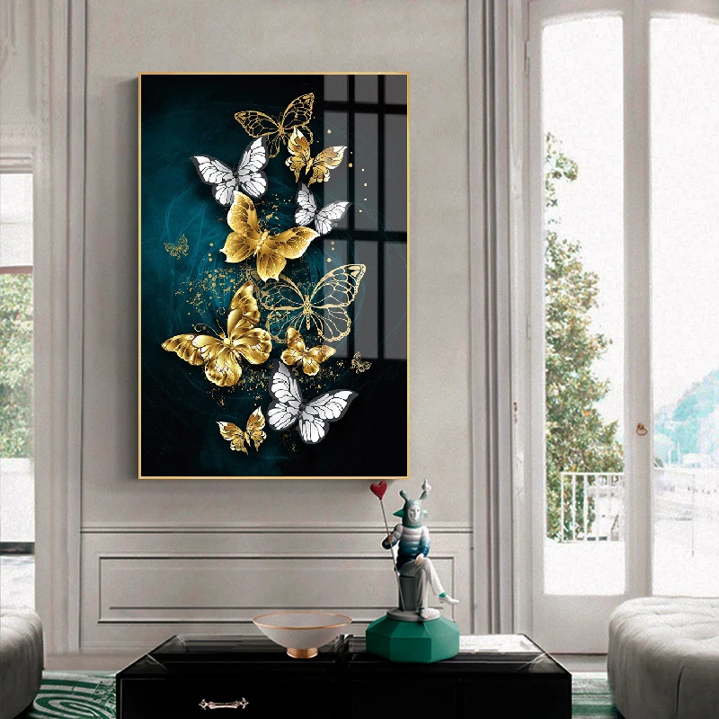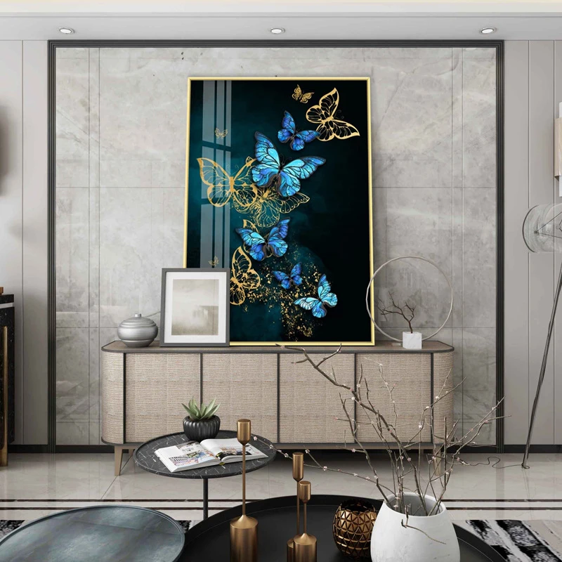 Современный минималистский плакат, изображение голубой золотой бабочки на холсте, настенная живопись, настенное украшение для гостиной, домашний декор
