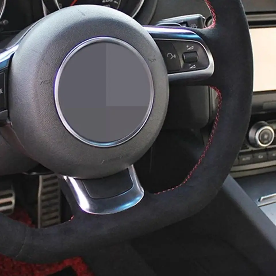 Черная замша Вручную прошитый чехол рулевого колеса автомобиля для ...