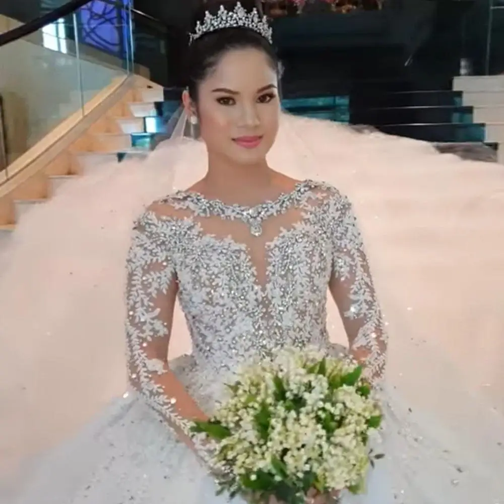 Блестящее свадебное платье с длинными рукавами, аппликацией из бисера