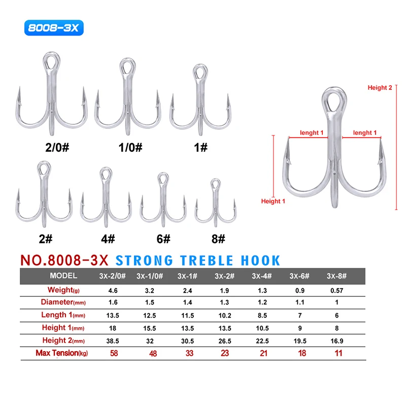 Крючки усиленные, отлично подходят для замены крючков, слабых в искусственных блеснах. Даже для тех рыбок, которые крепкие, как бас, предали среди других.