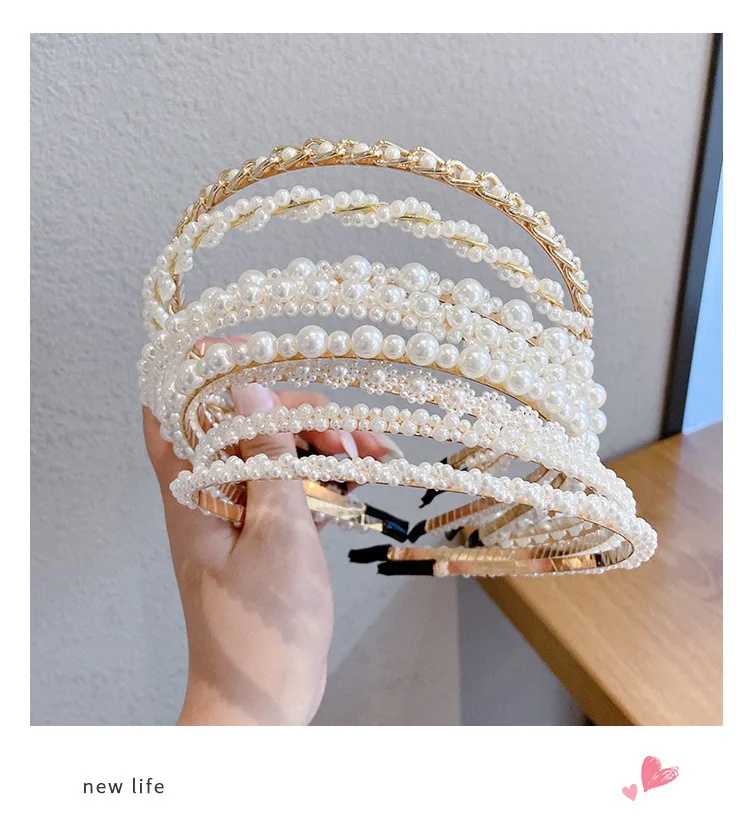 Обруч для волос Женский, золотистый, металлический, с жемчугом, металлические заколки для волос