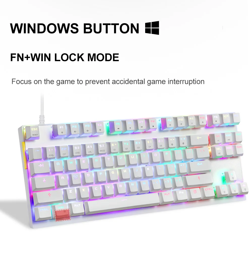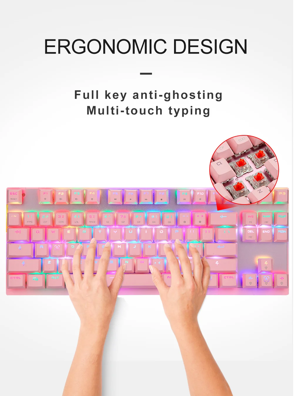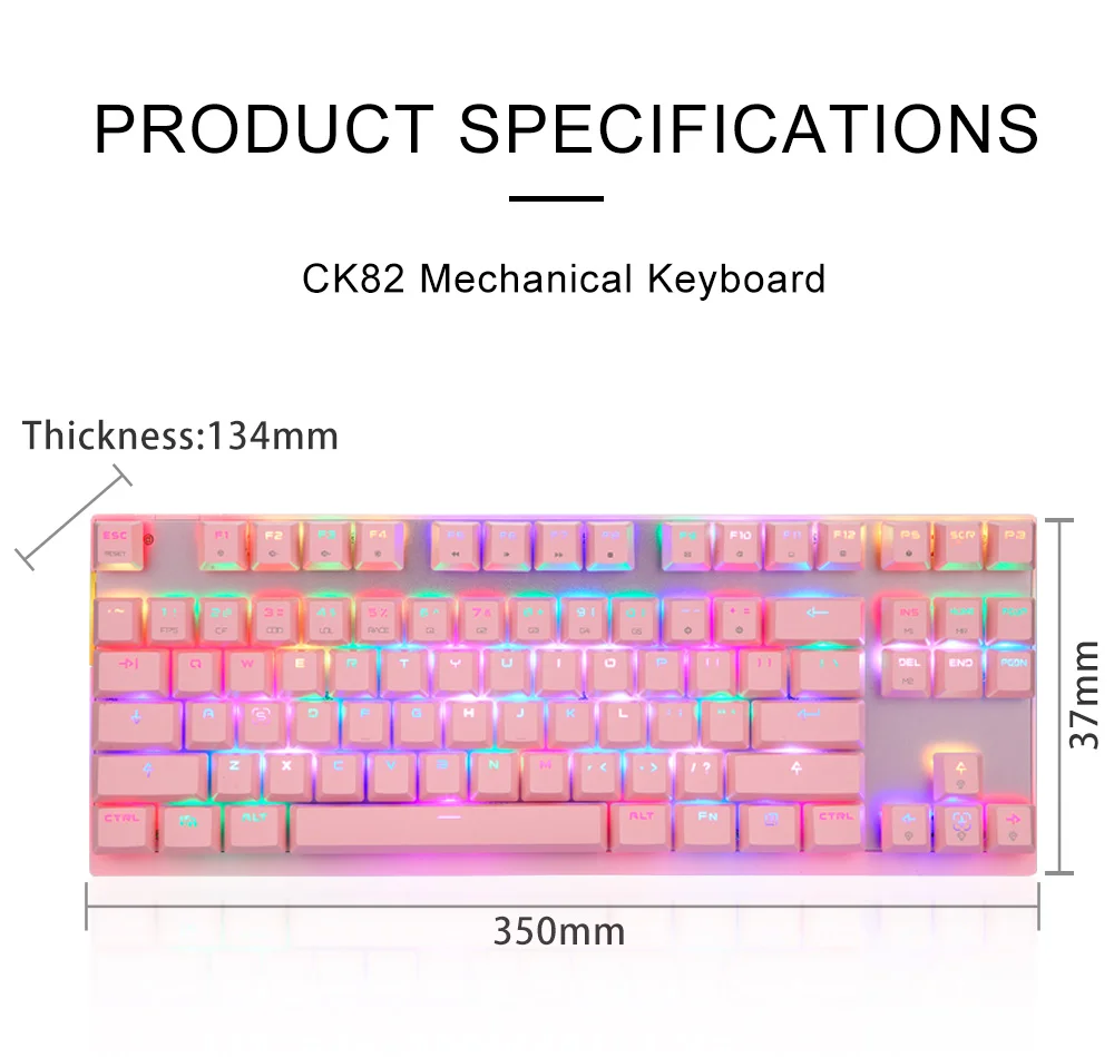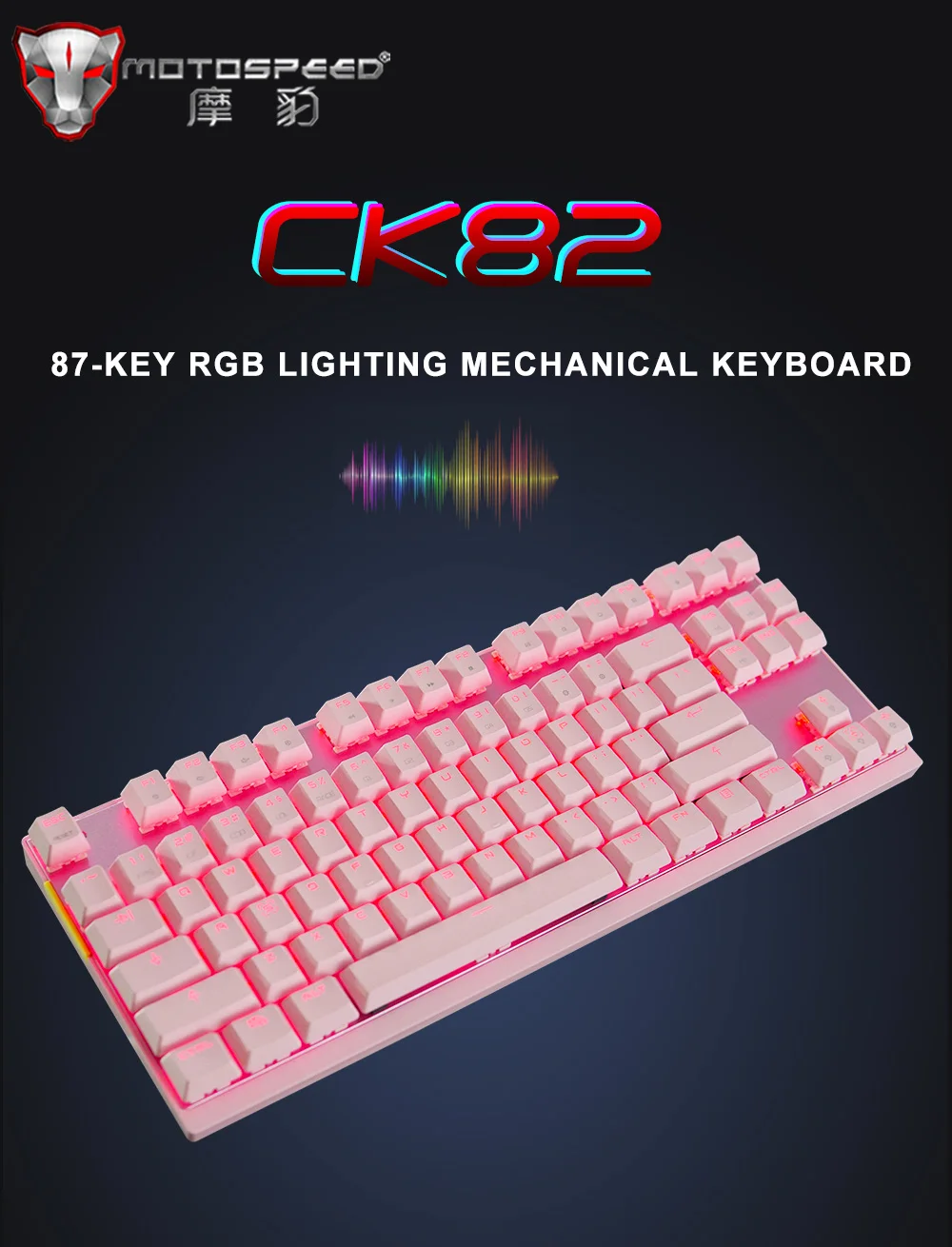 Клавиатура Motospeed CK82 игровая механическая, RGB-подсветка, 87 клавиш, USB, проводная, лазерная, эргономичная