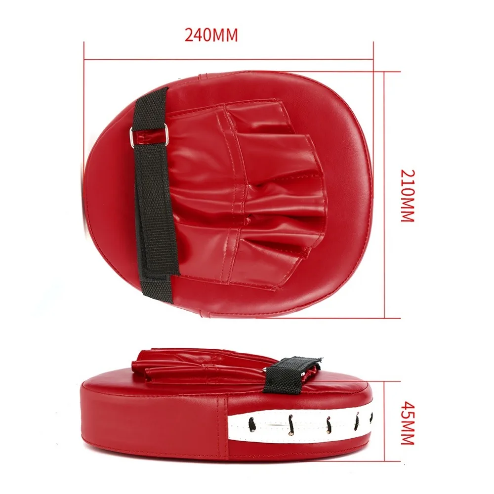 Цвет: красный, черный (опционально)Материал: из искусственной кожи и ЭВАКоличество: 1 шт.Подходит для: подходит для домашнего использования, для боевых искусств, школьных клубовВес нетто: 107 гРазмер Pruduct (Д x Ш x В): 240x210x45 мм