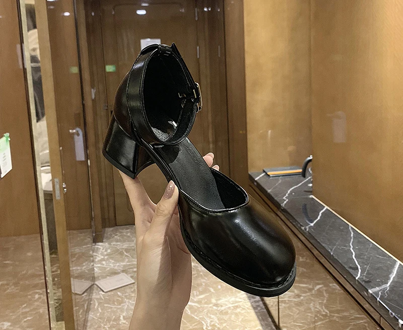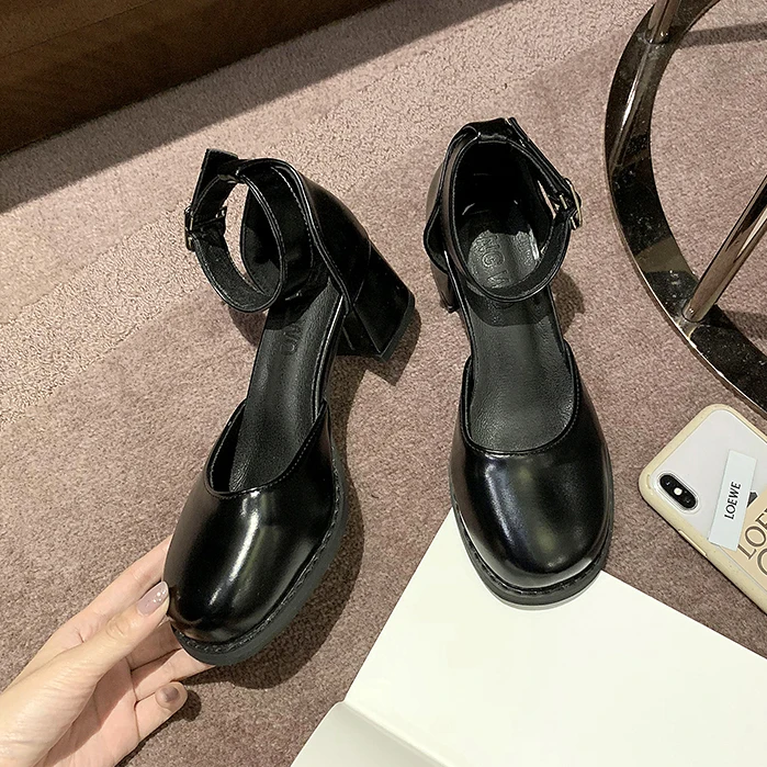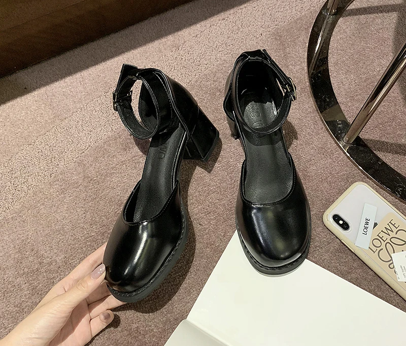 Туфли-лодочки женские из лакированной кожи, высокий каблук, платформа, круглый носок, Туфли Мэри Джейн, черные