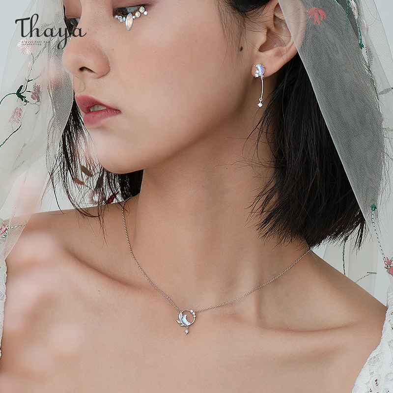 Thaya, Настоящее серебро 925 пробы, Ожерелье 45 см, подвеска в виде полумесяца, кулон из циркония, серебряный светильник, синее ожерелье для женщин, элегантное ювелирное изделие, подарок