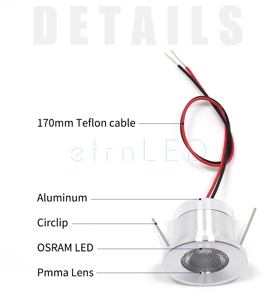 Бренд: etrnLEDНазвание: Мини прожектор с регулируемой яркостью для сауныМодель: MINI22A-1W/MINI60A-1W водонепроницаемый прожекторЧипы: 1 Вт osram СВЕТОДИОДНЫЙДиммируемая: Поддержка PWM затемненияВходное напряжение: 12 ВСветильник Материал корпуса: алюминийЦветовая температура: WW(2700-3000K), W(4000-4500K), CW(5500-6500K)Длина кабеля: 170 мм тефлоновый кабельКласс защиты: IP52/IP65Световой поток: 100-130 лмCRI:>80RaРазмеры: D32 × h22мм, d27мм вырезанные отверстияУстановка: встраиваемый точечный светодиодСтепень рассеивания света: 30 °Срок службы: 50000 hГарантия: 5 летСертификация: CE RoHSПрименение: потолок, спальня, кухня, гостиная, витрина, шкаф, книжный шкаф, винный шкаф, лестница, вход, коридор, автомобили, бар, KTV, ресторан, Звездные огни, или что вы можете себе представить!