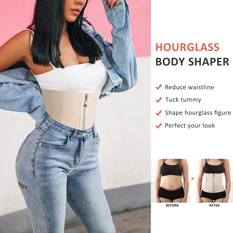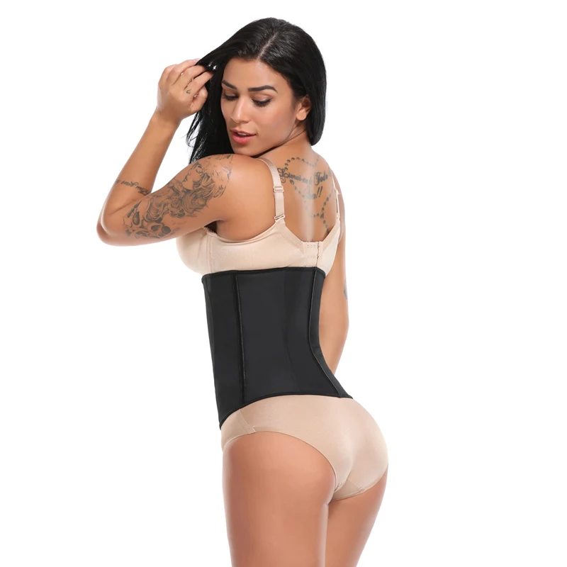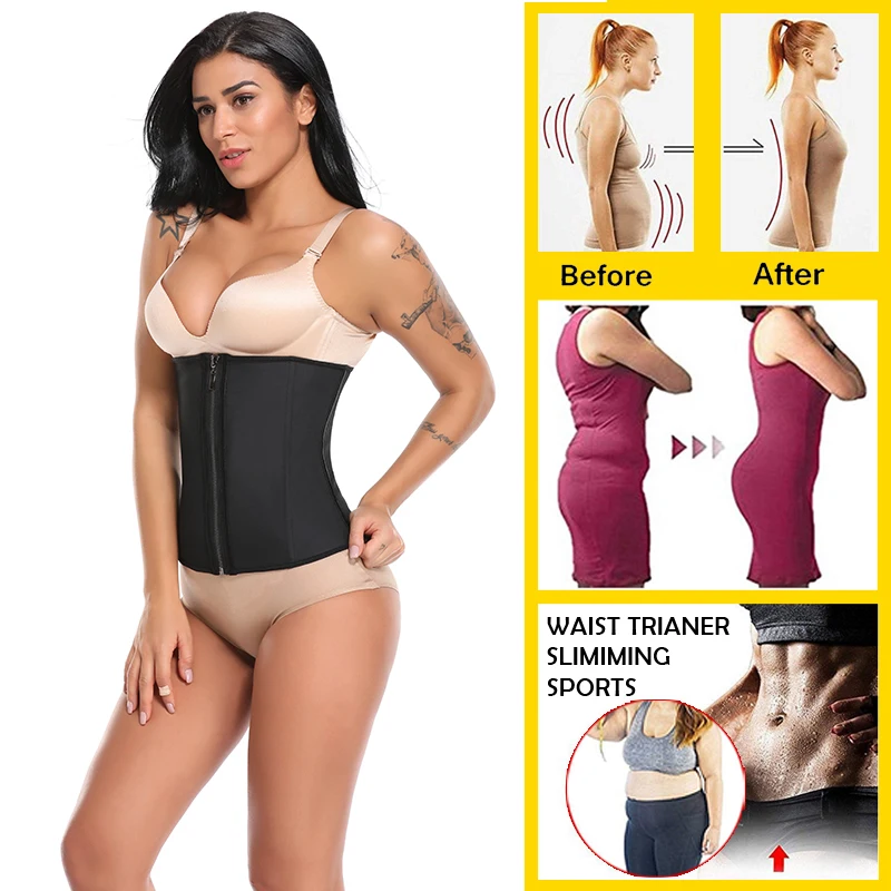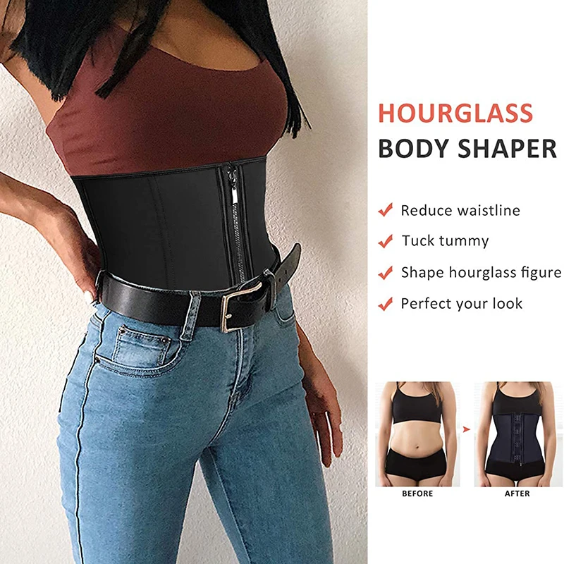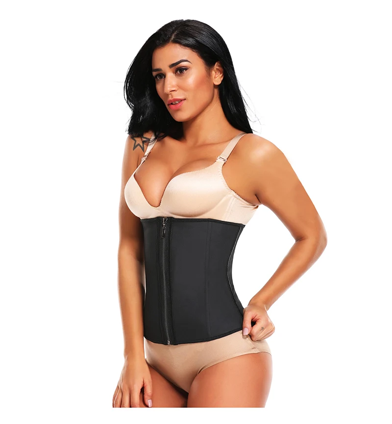Женский латексный тренажер для талии, корсеты для коррекции фигуры с застежкой-молнией, корсет, топ, пояс для похудения, Черная Женская одежда