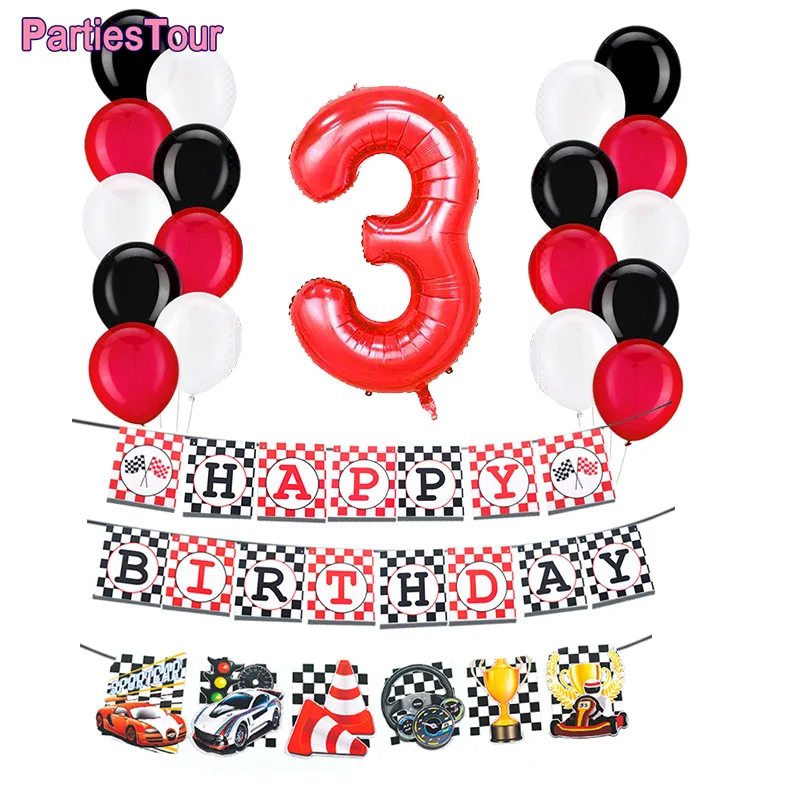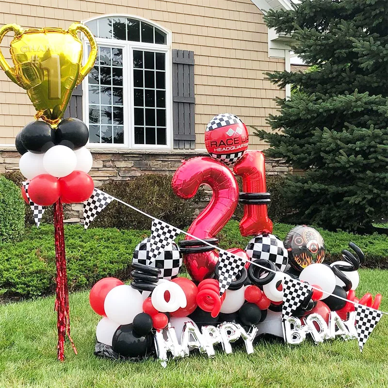 Украшения на день рождения, гоночный автомобиль вечерние баннер, черно-белые гелиевые шары в шахматную клетку, 2, 3, 4, день рождения, товары для вечерние НКИ