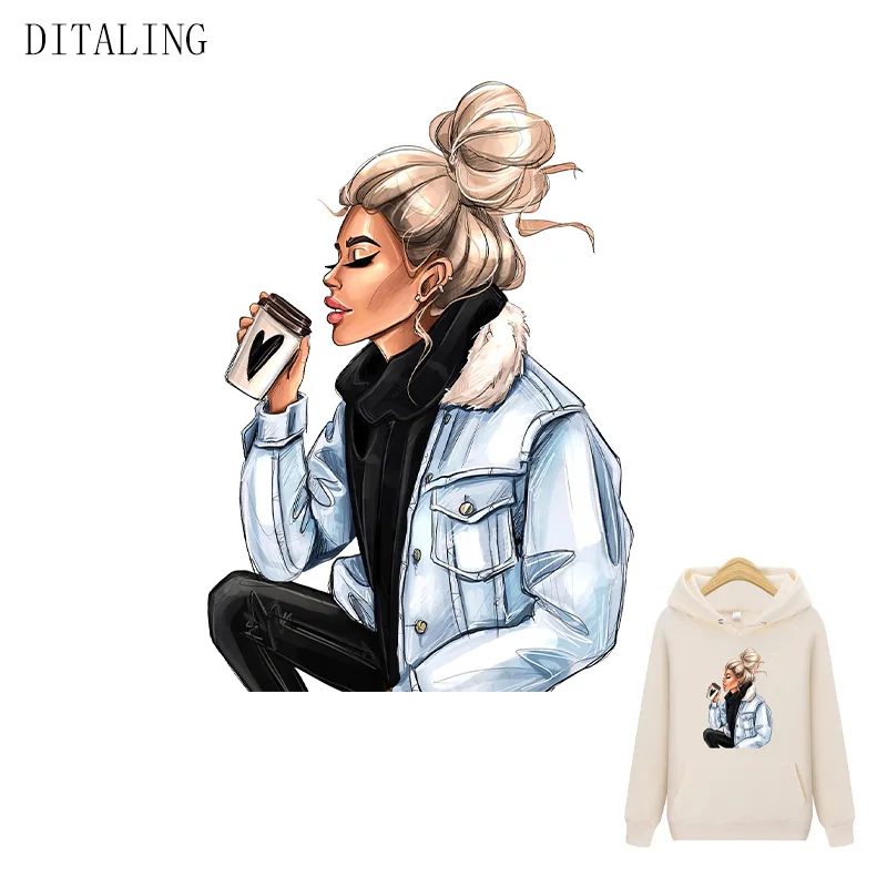 Термопереводная наклейка Coffee Girl для одежды, модные женские наш...
