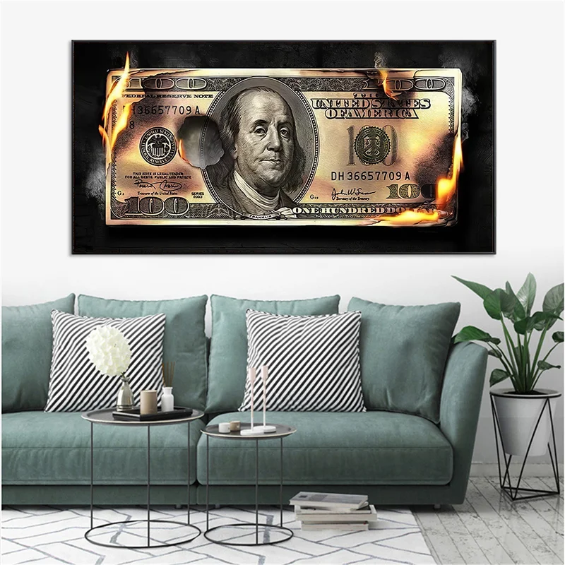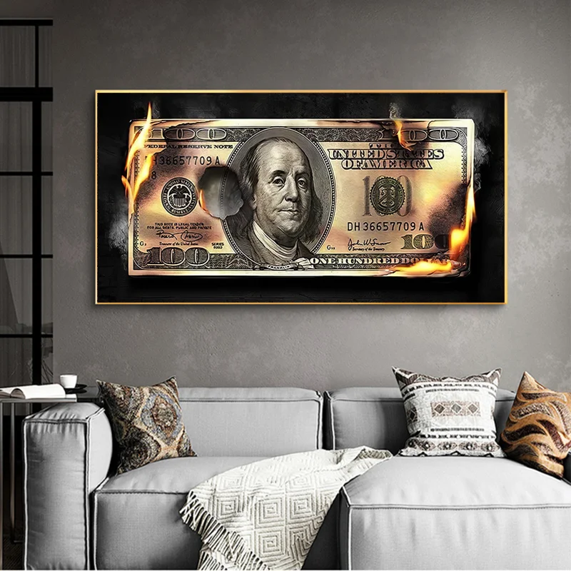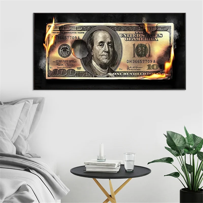 Современные художественные картины на холсте сжигающие доллары, постеры и принты, скандинавские настенные картины для гостиной, домашний декор без рамки