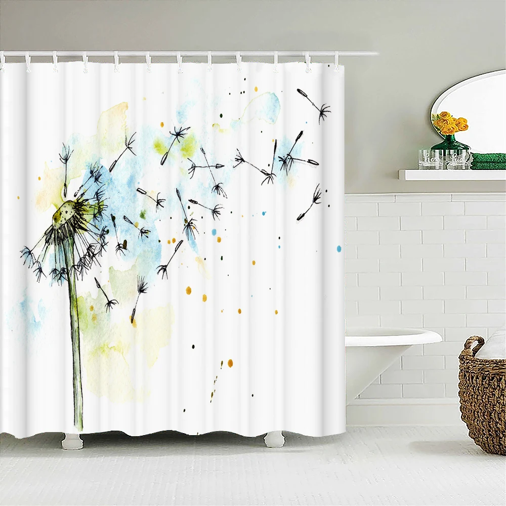 Занавеска для ванной с 3d-рисунком одуванчика, водонепроницаемая шт...