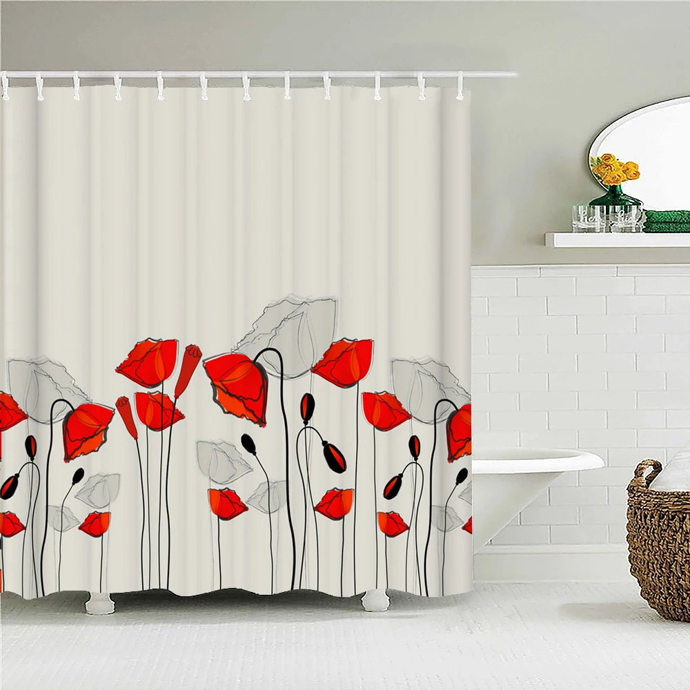 Водонепроницаемая занавеска для ванной из полиэстера, с цветами